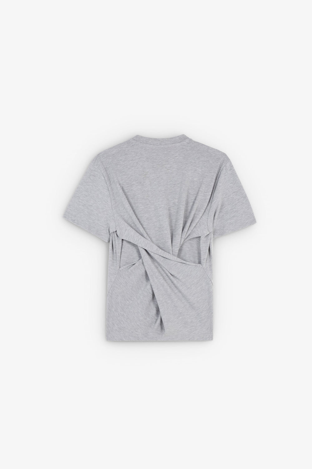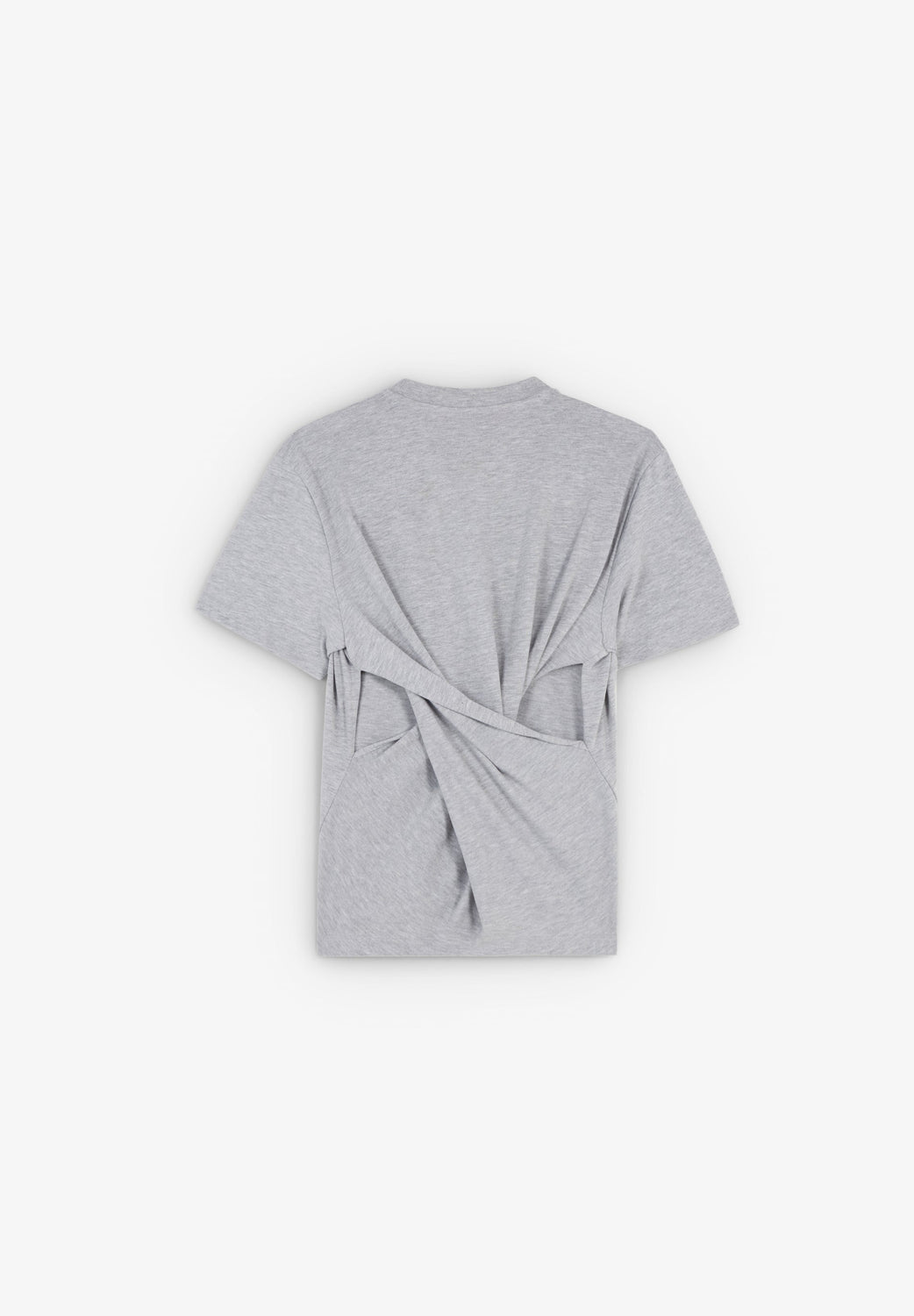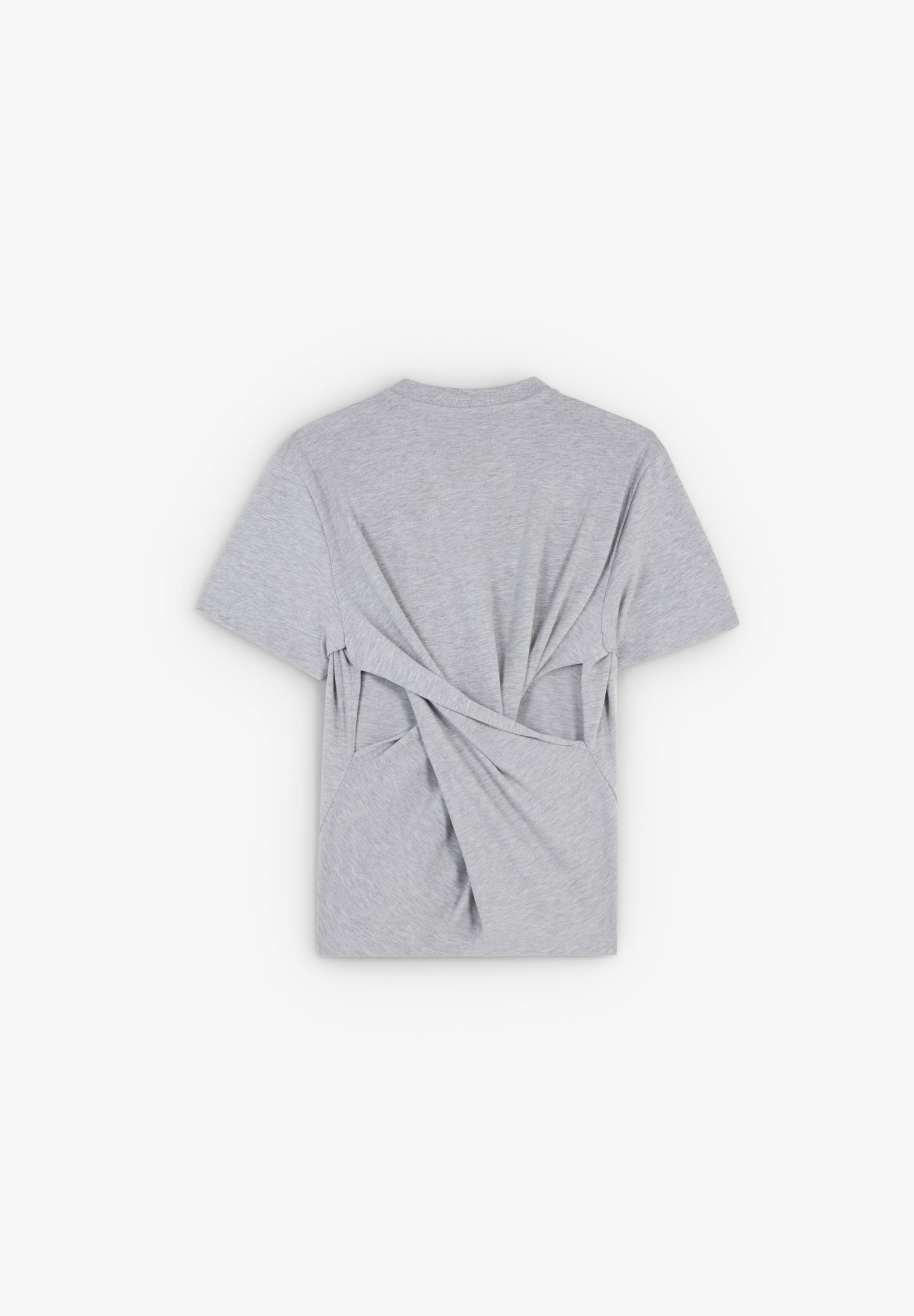 Camiseta confeccionada en 100% algodón. Regular fit, cuello redondo y manga corta. Detalle de nudo trasero y aberturas.