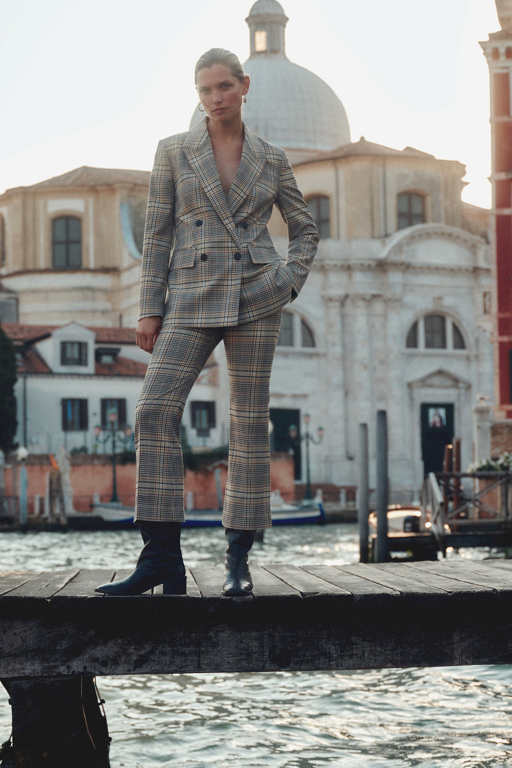 Pantalón de cuadros. Corte Ankle Flare. Cierre con cremallera lateral.
