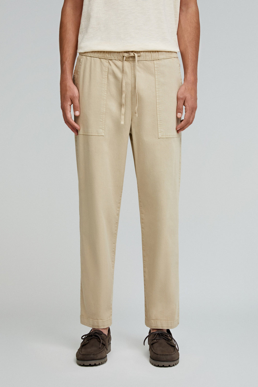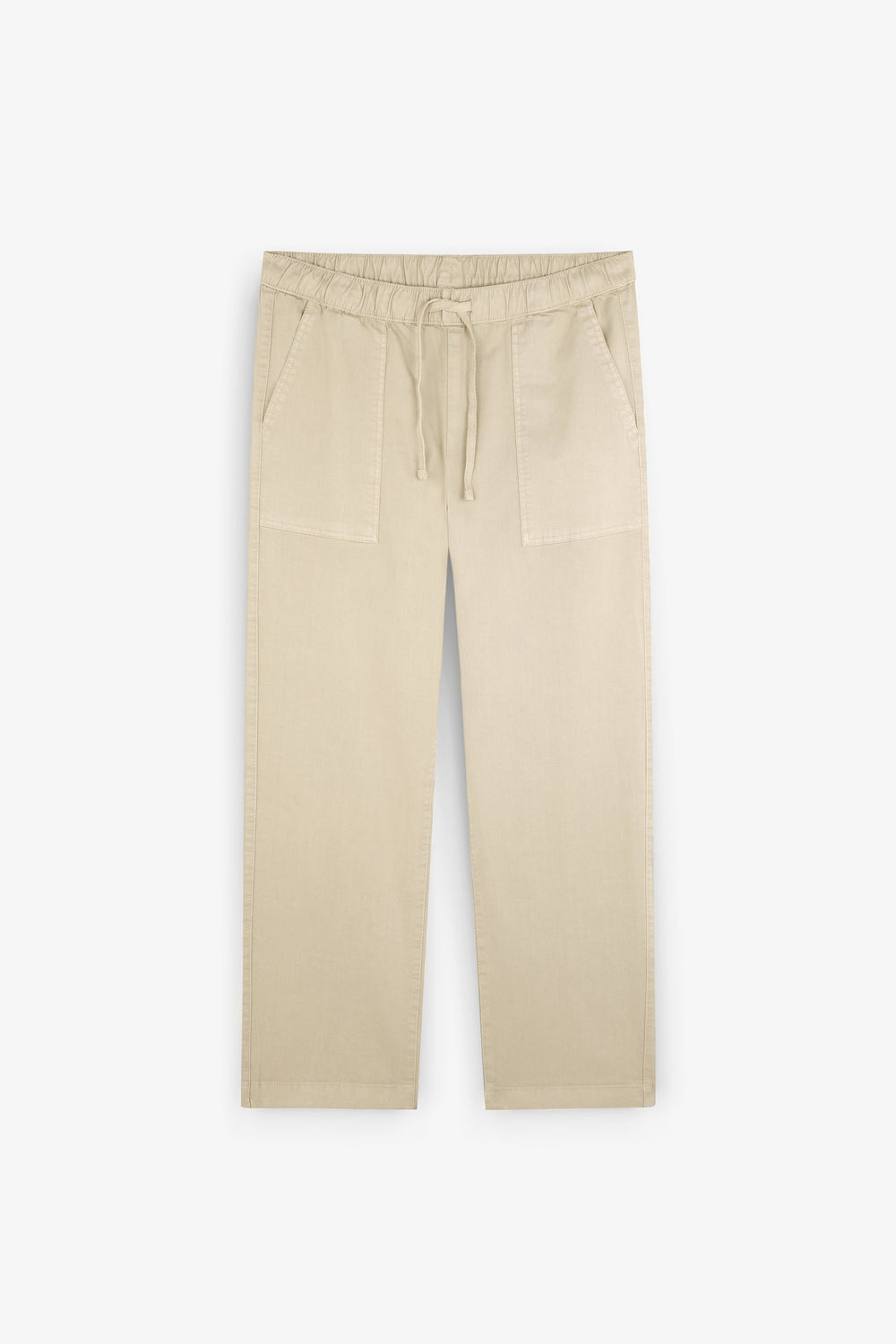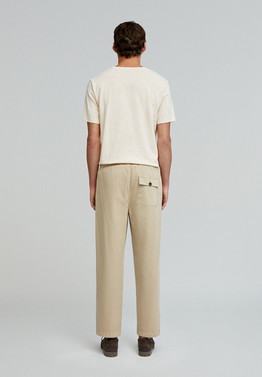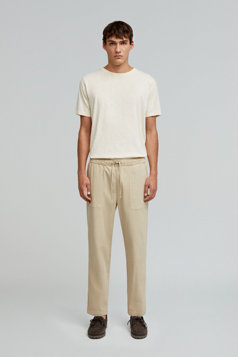 Pantalón confeccionado en algodón ligeramente elástico. Relaxed fit, cinturilla elástica. Cierre con cordón. Bolsillos laterales y trasero con tapeta.