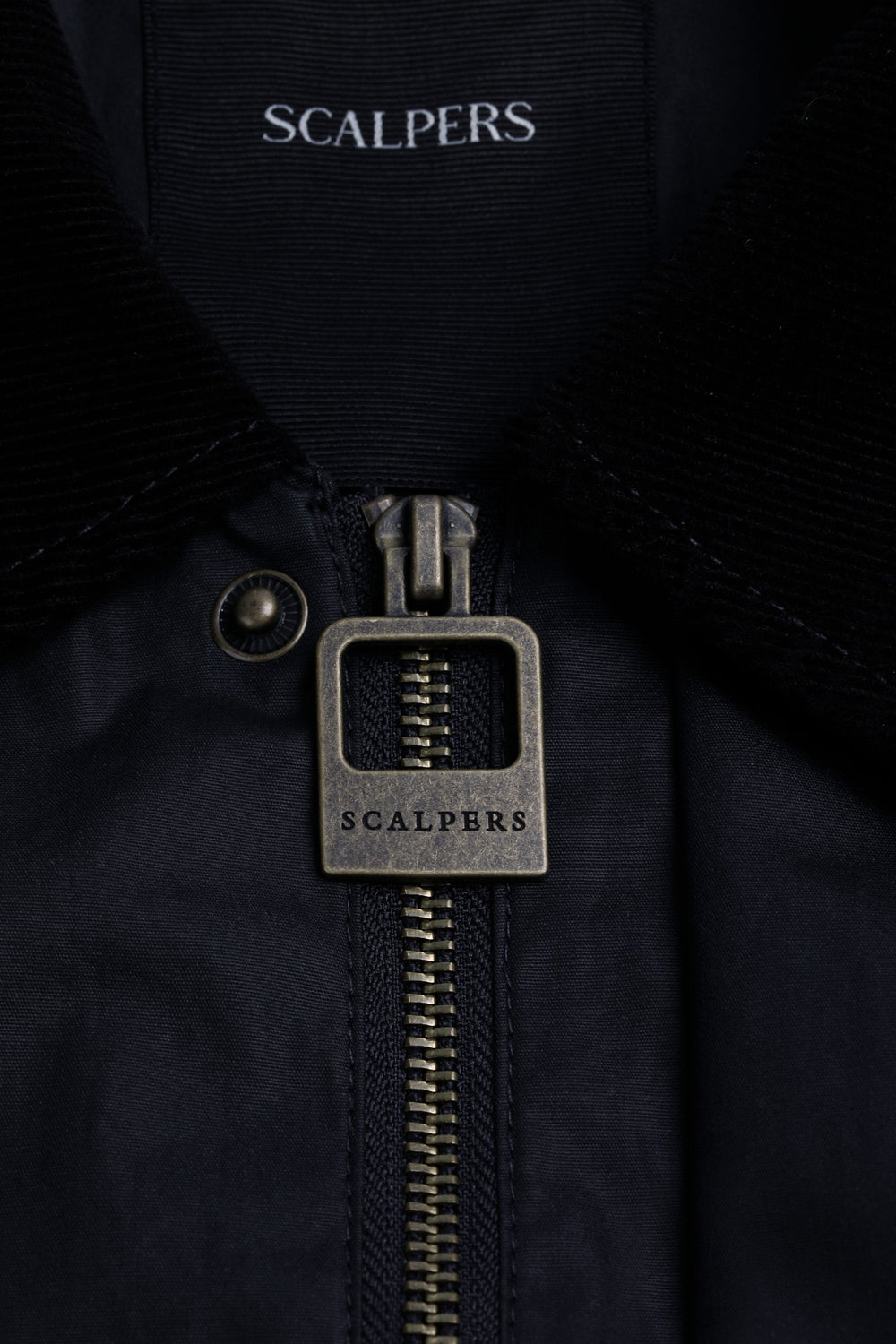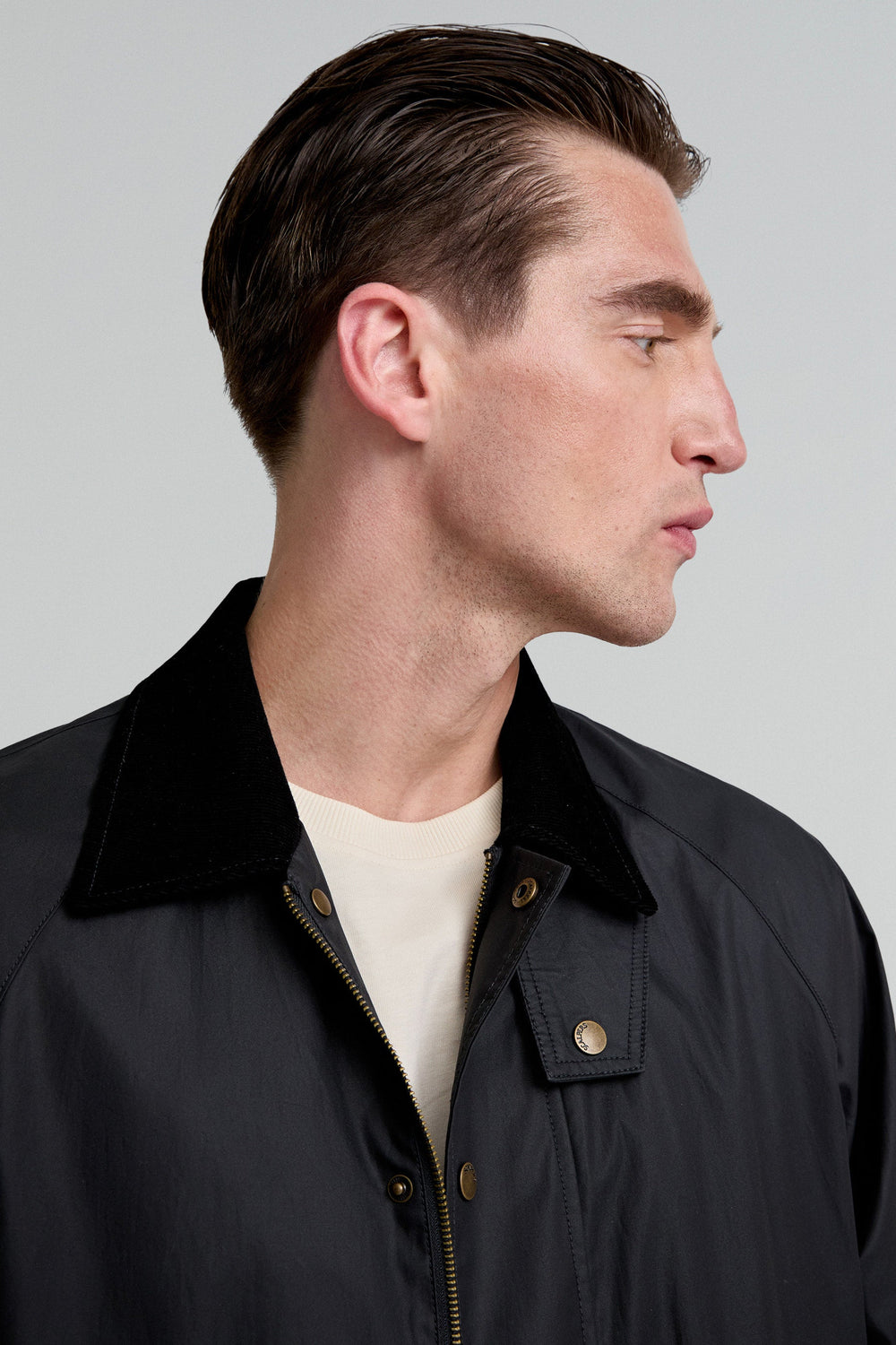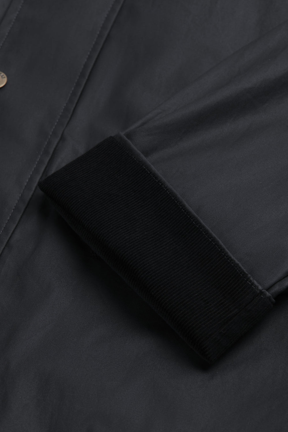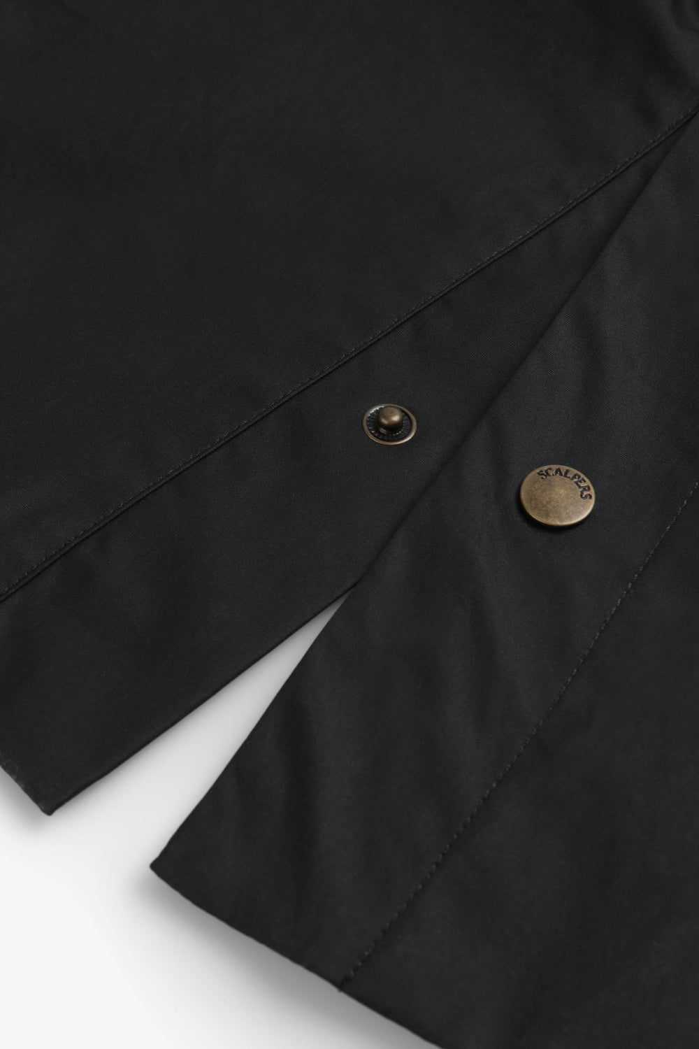 Parka encerada confeccionada en tejido técnico water resistant. Regular fit, cuello de pana y cierre con cremallera y botones de snaps. Manga larga y abertura trasera con snaps. Bolsillos con tapeta y bolsillo interior con cremallera. Detalle de cierre en el cuello con snaps.