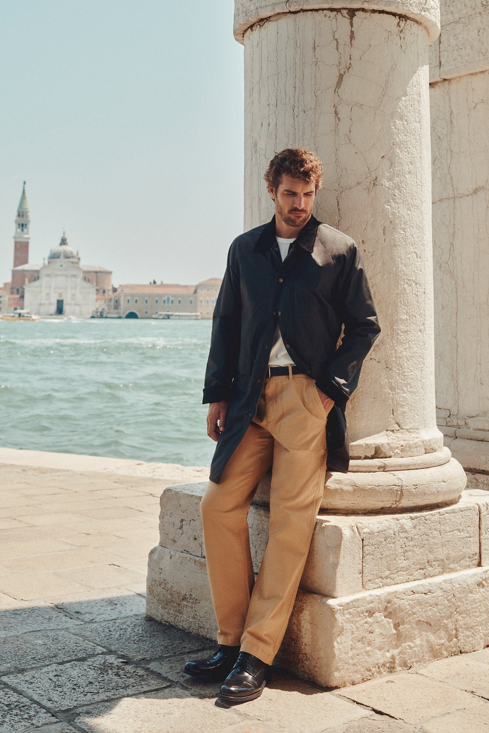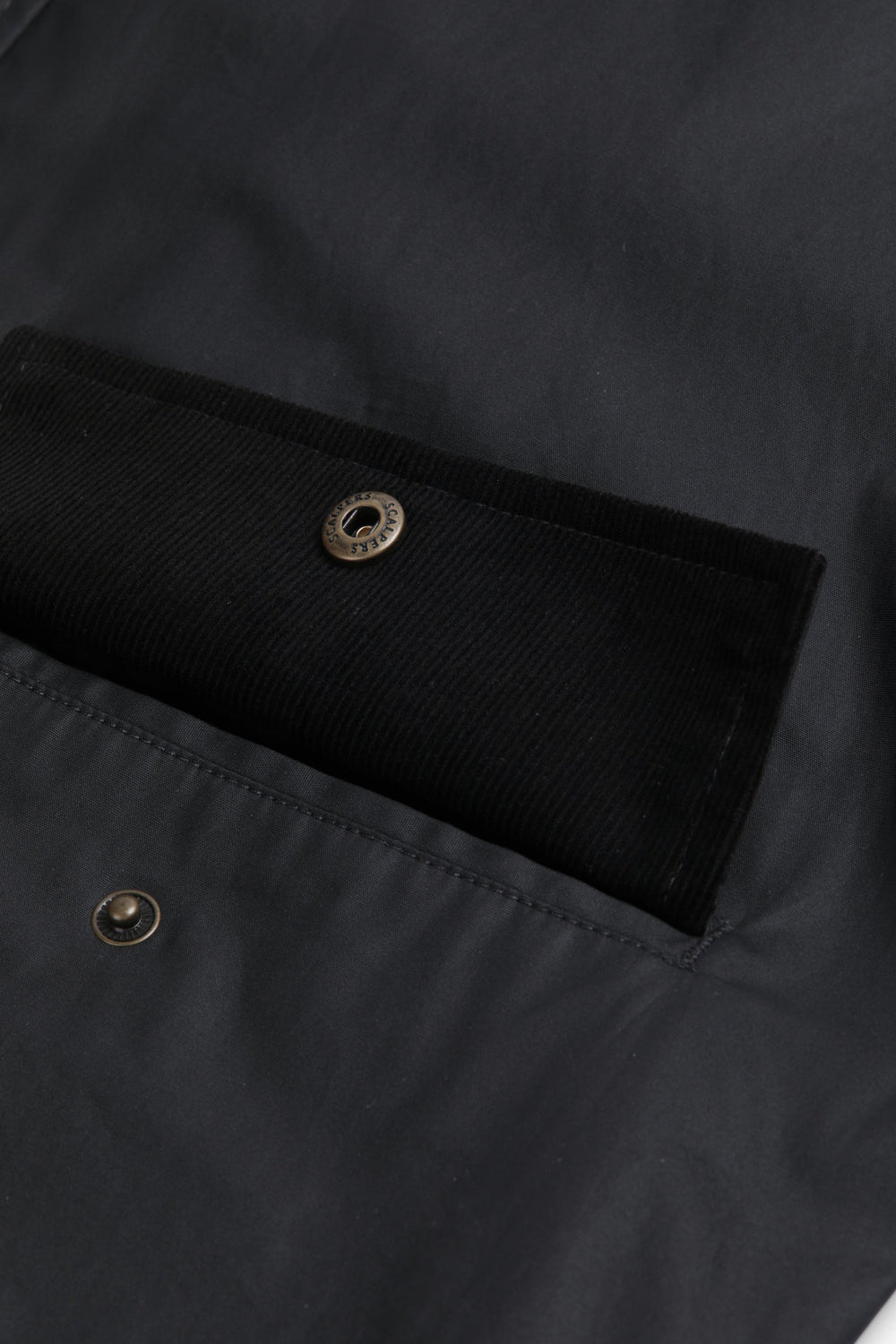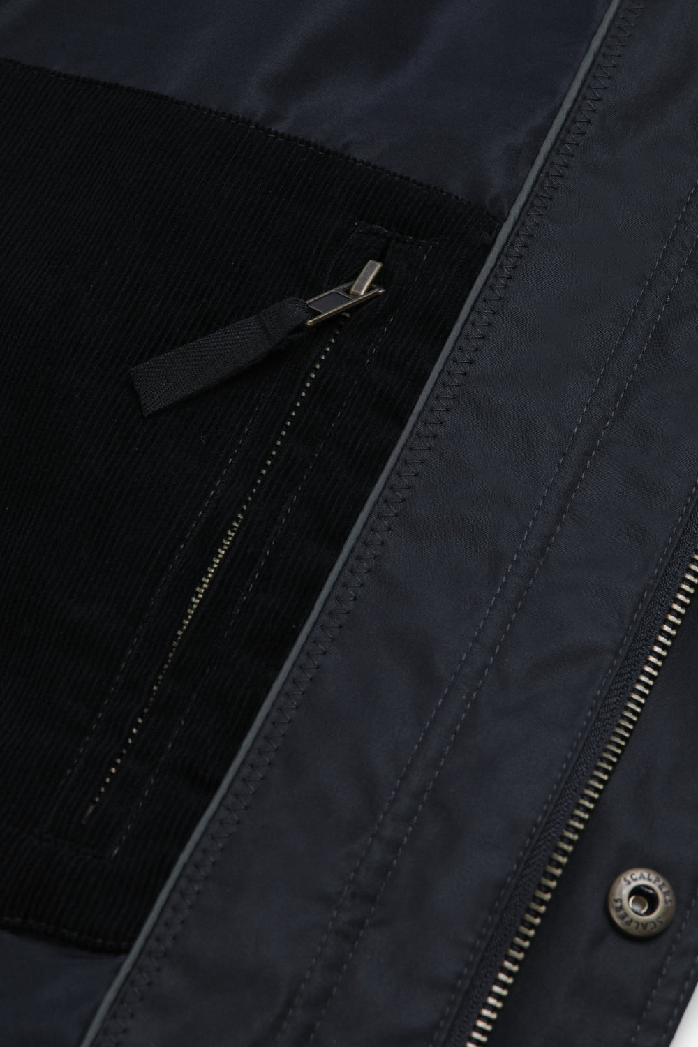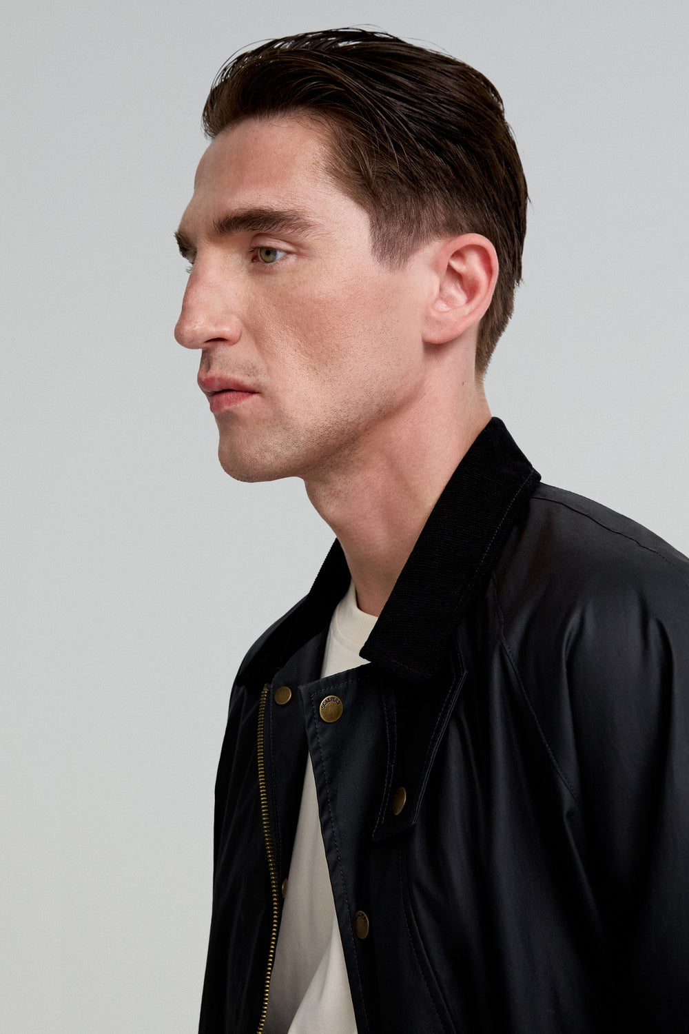 Parka encerada confeccionada en tejido técnico water resistant. Regular fit, cuello de pana y cierre con cremallera y botones de snaps. Manga larga y abertura trasera con snaps. Bolsillos con tapeta y bolsillo interior con cremallera. Detalle de cierre en el cuello con snaps.
