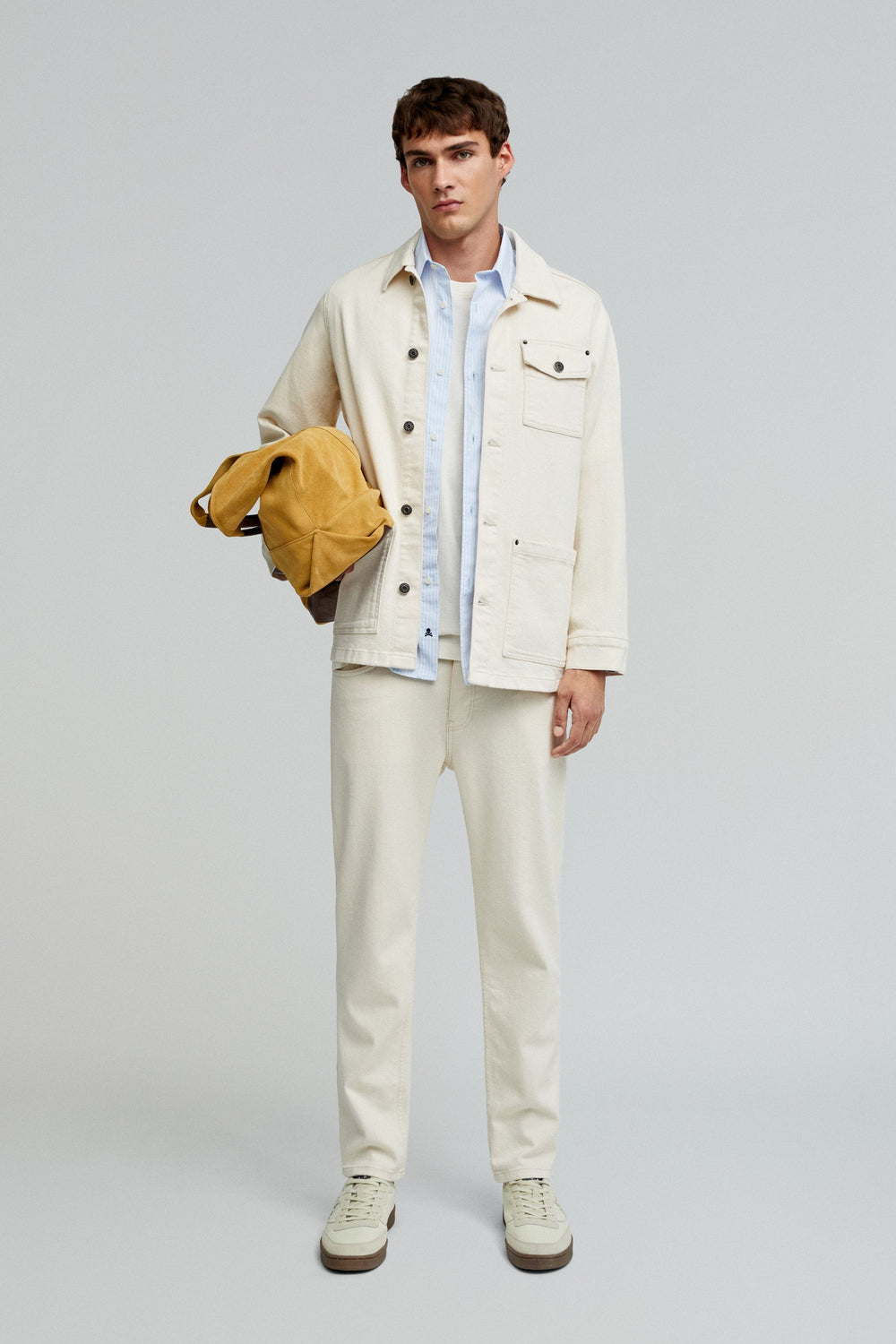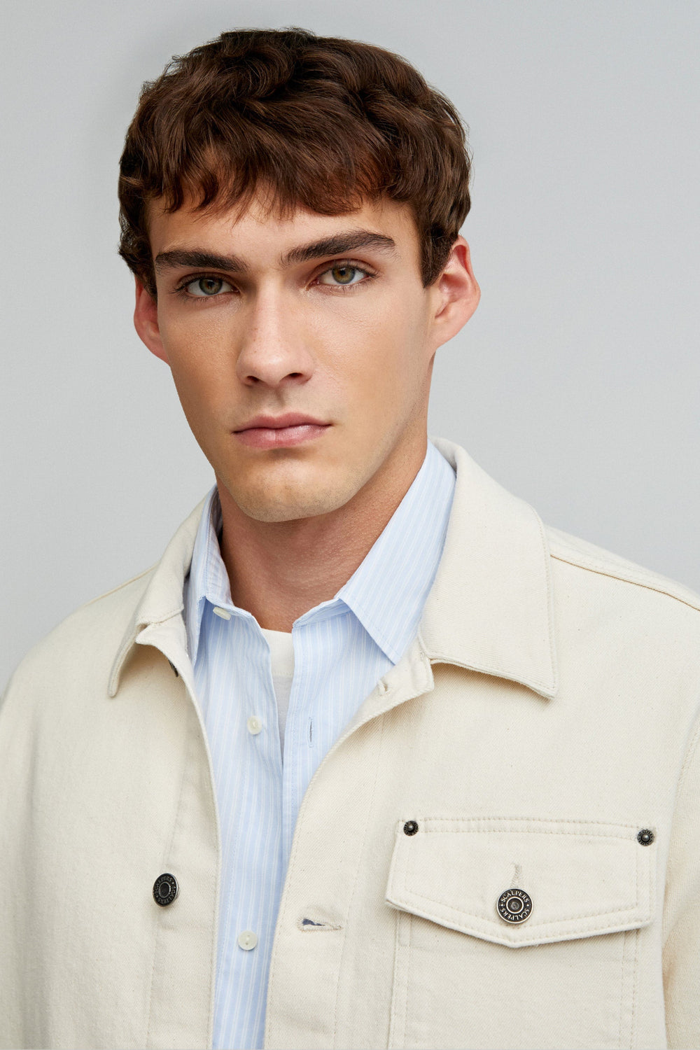 Sobrecamisa denim confeccionada en 100% algodón orgánico. Regular fit, cuello clásico y cierre con botones. Manga larga. Bolsillo con tapeta en pecho y de parche. Etiqueta en el bajo.