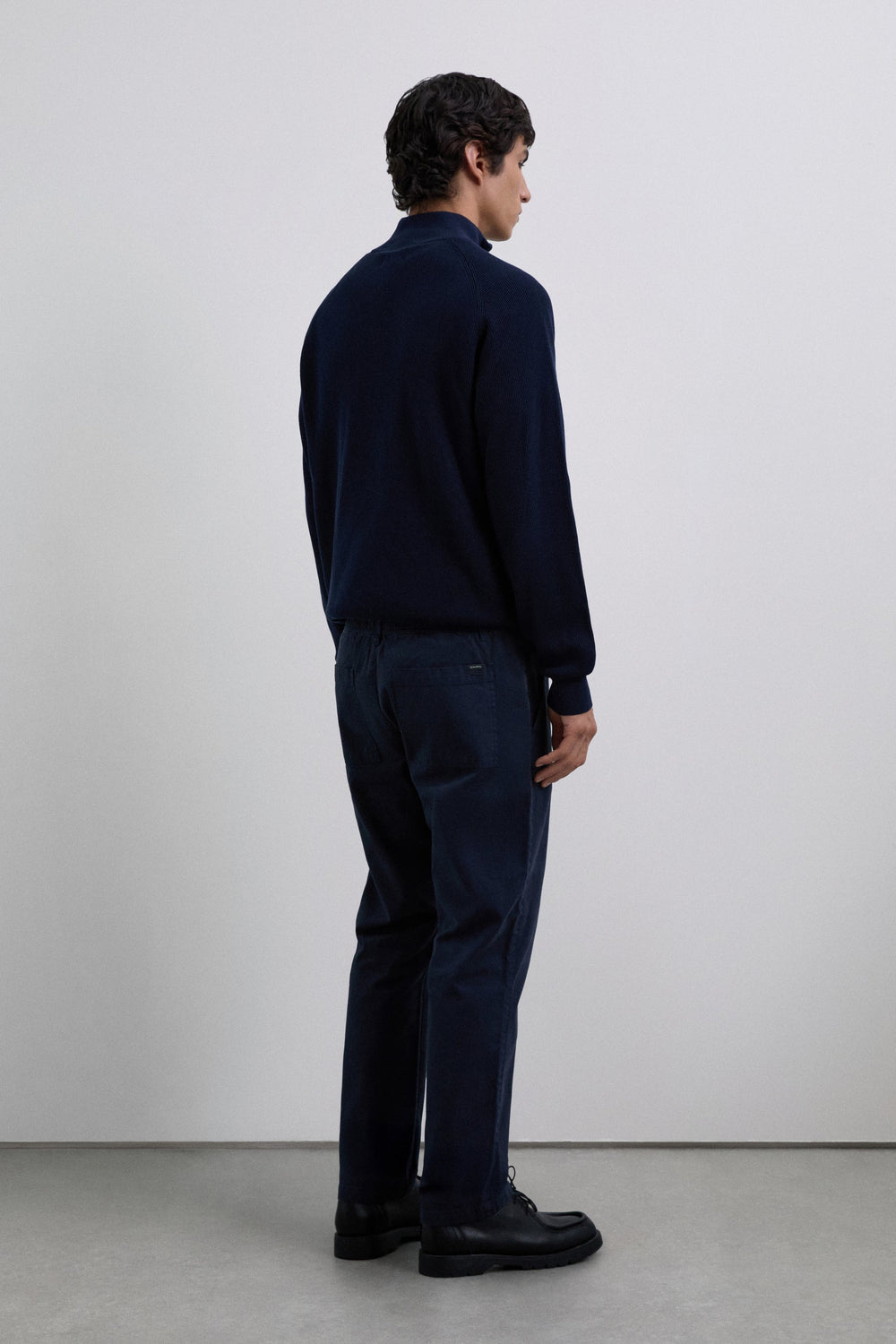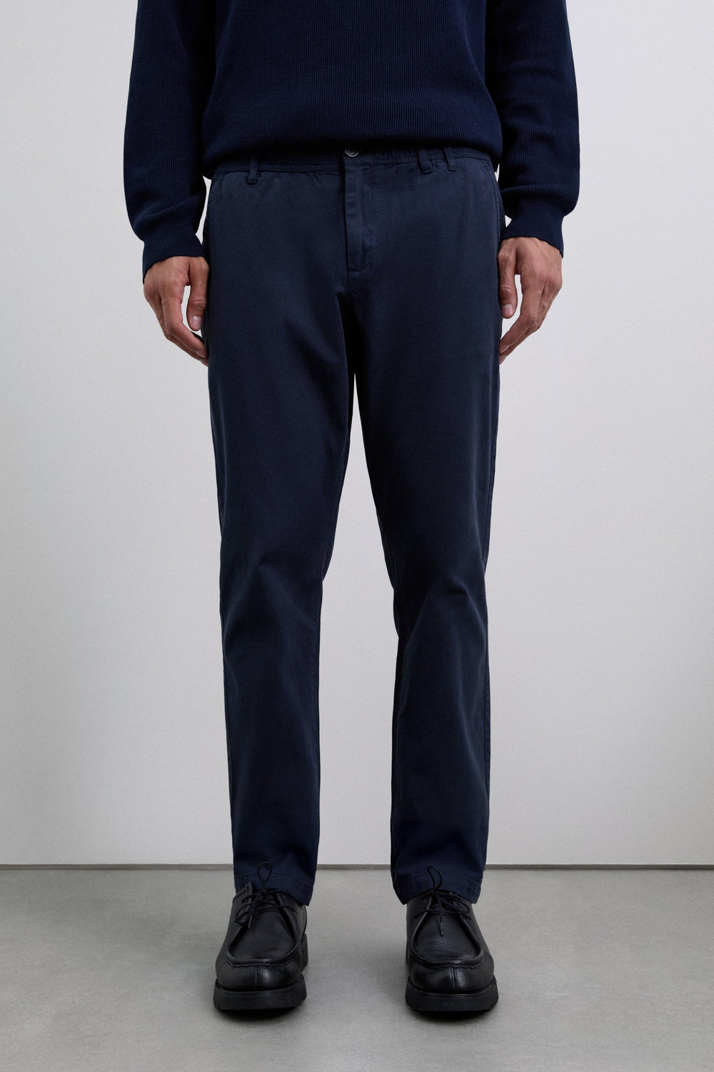 Pantalón de sarga confeccionado en 100% algodón BCI. Regular fit. Cierre mediante cremallera y abotonadura frontal. Bolsillos laterales y en espalda. Detalle de etiqueta en bolsillo derecho posterior. Trabillas en cintura.