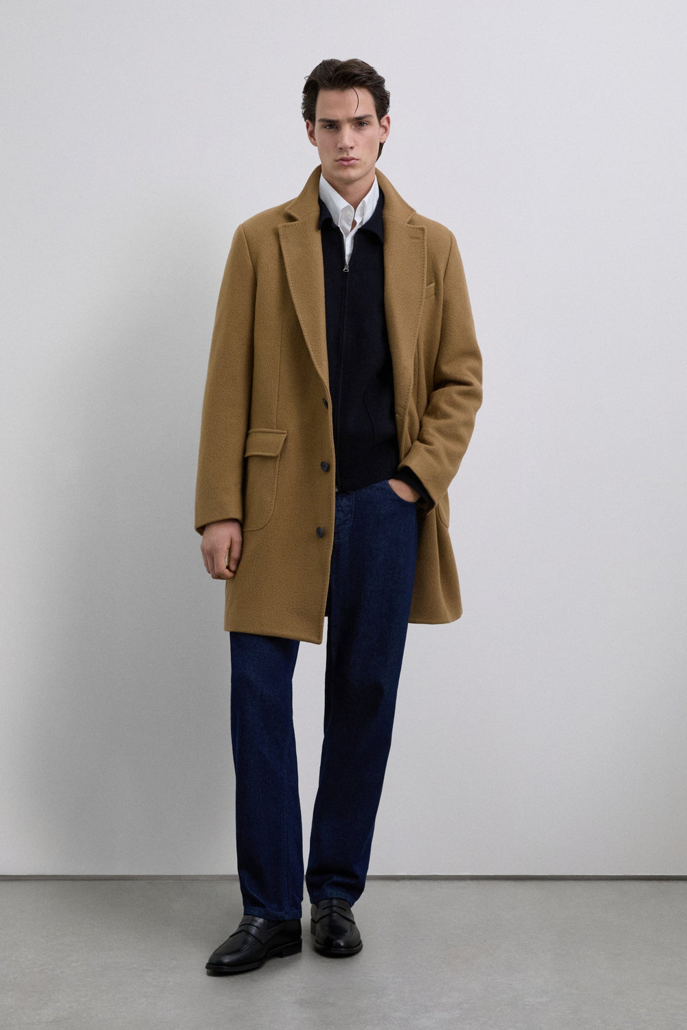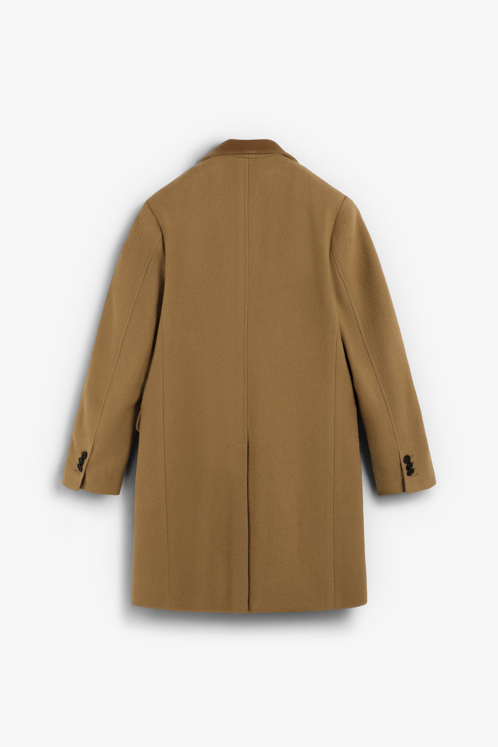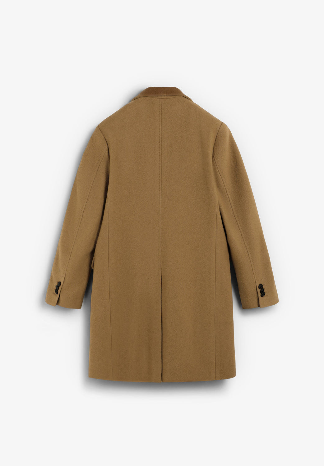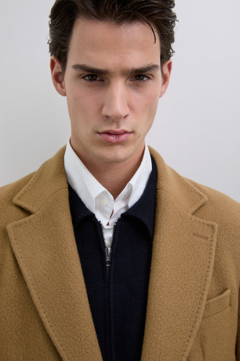 Abrigo largo confeccionado en mezcla de lana virgen de alta calidad. Cuello con solapa. Manga larga con puño abotonado. Bolsillos en frontal con solapa doble. Cierre por abotonadura frontal. Abertura central posterior.