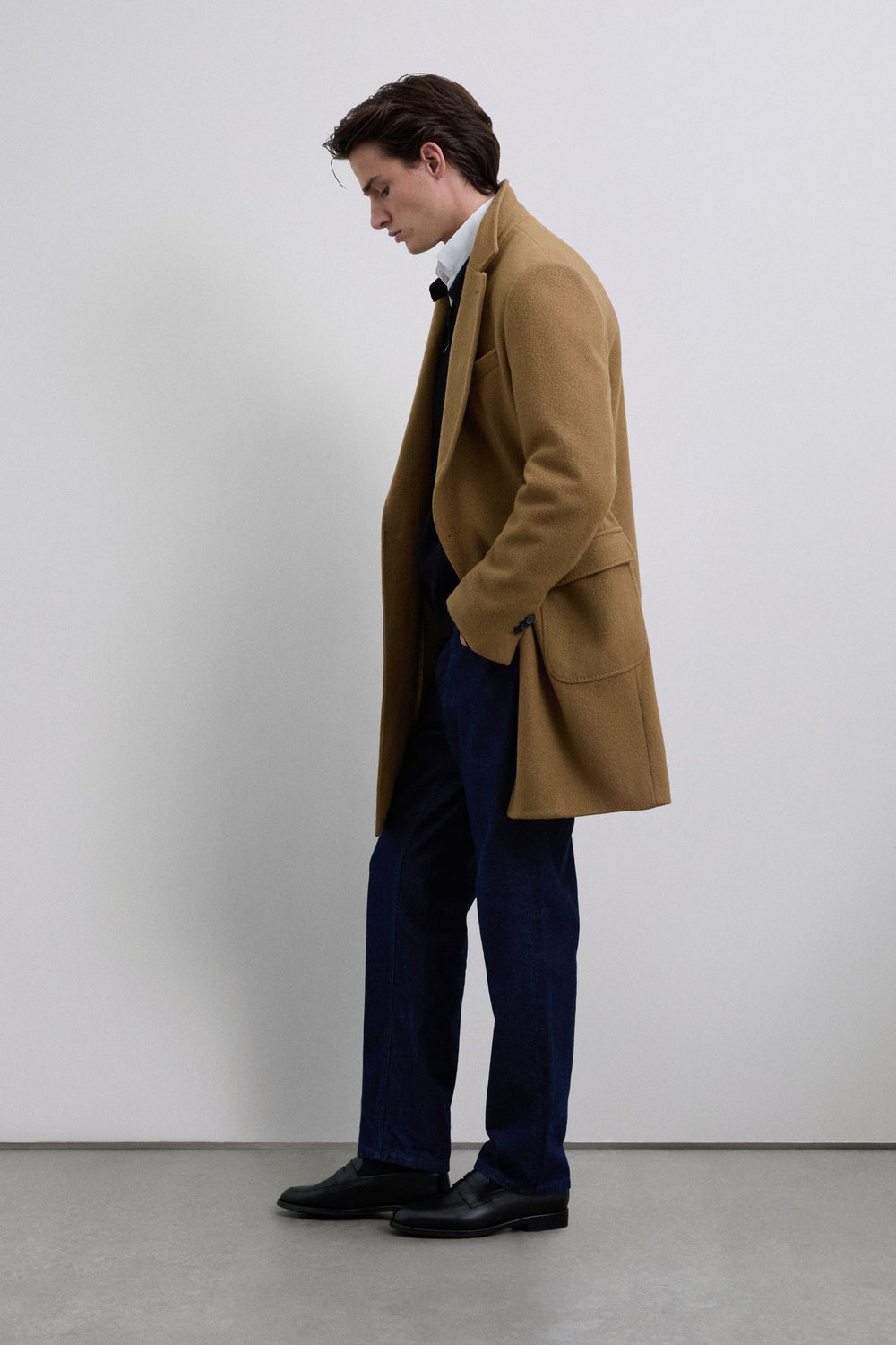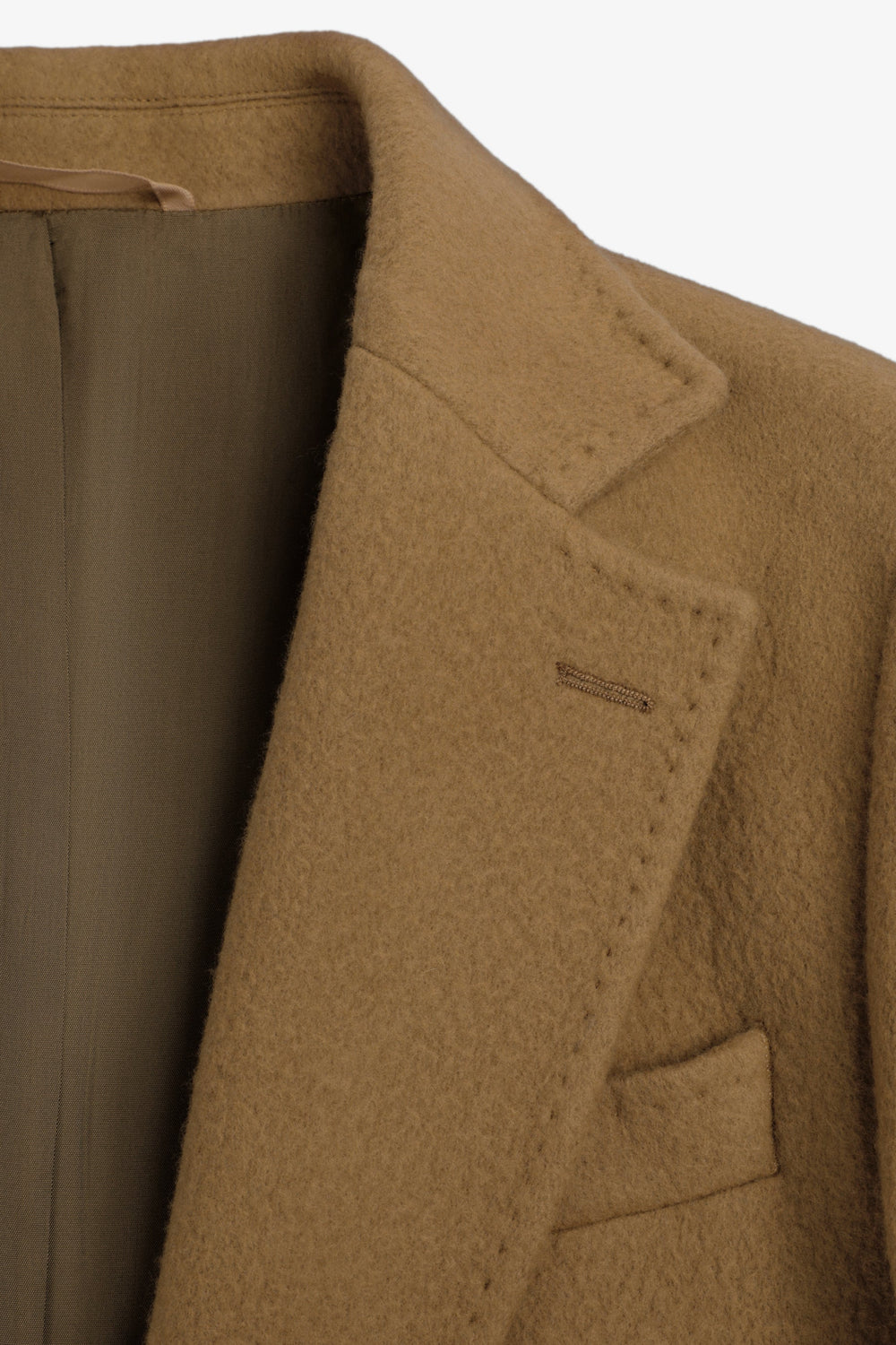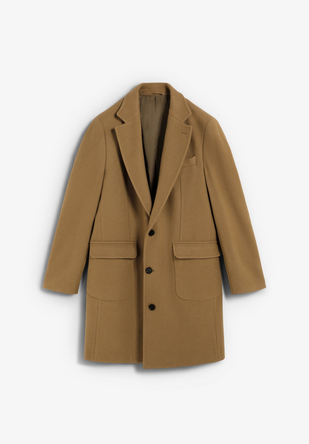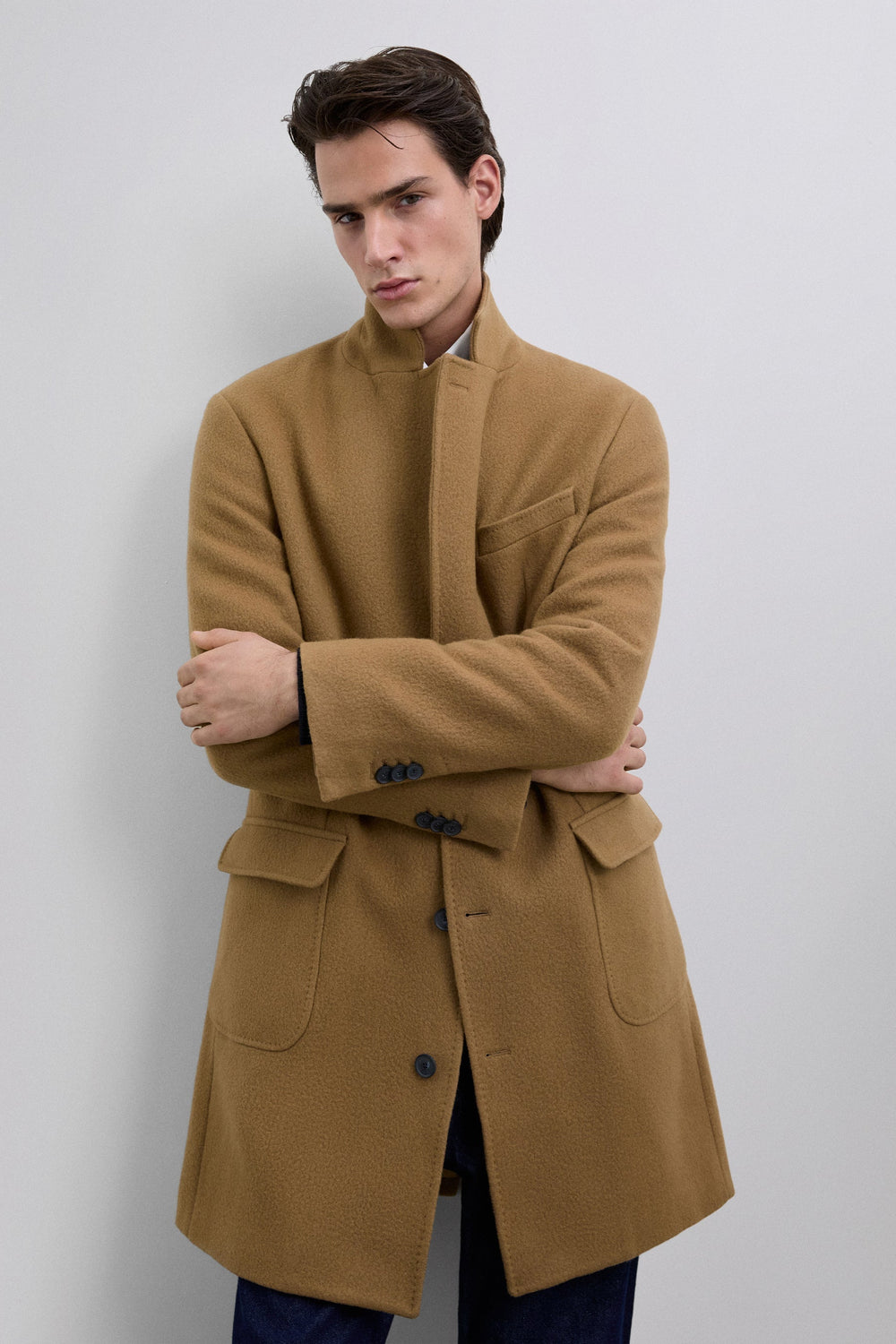 Abrigo largo confeccionado en mezcla de lana virgen de alta calidad. Cuello con solapa. Manga larga con puño abotonado. Bolsillos en frontal con solapa doble. Cierre por abotonadura frontal. Abertura central posterior.