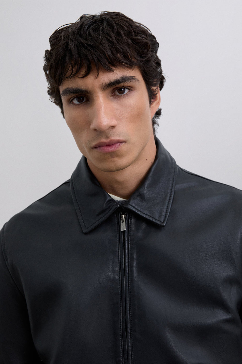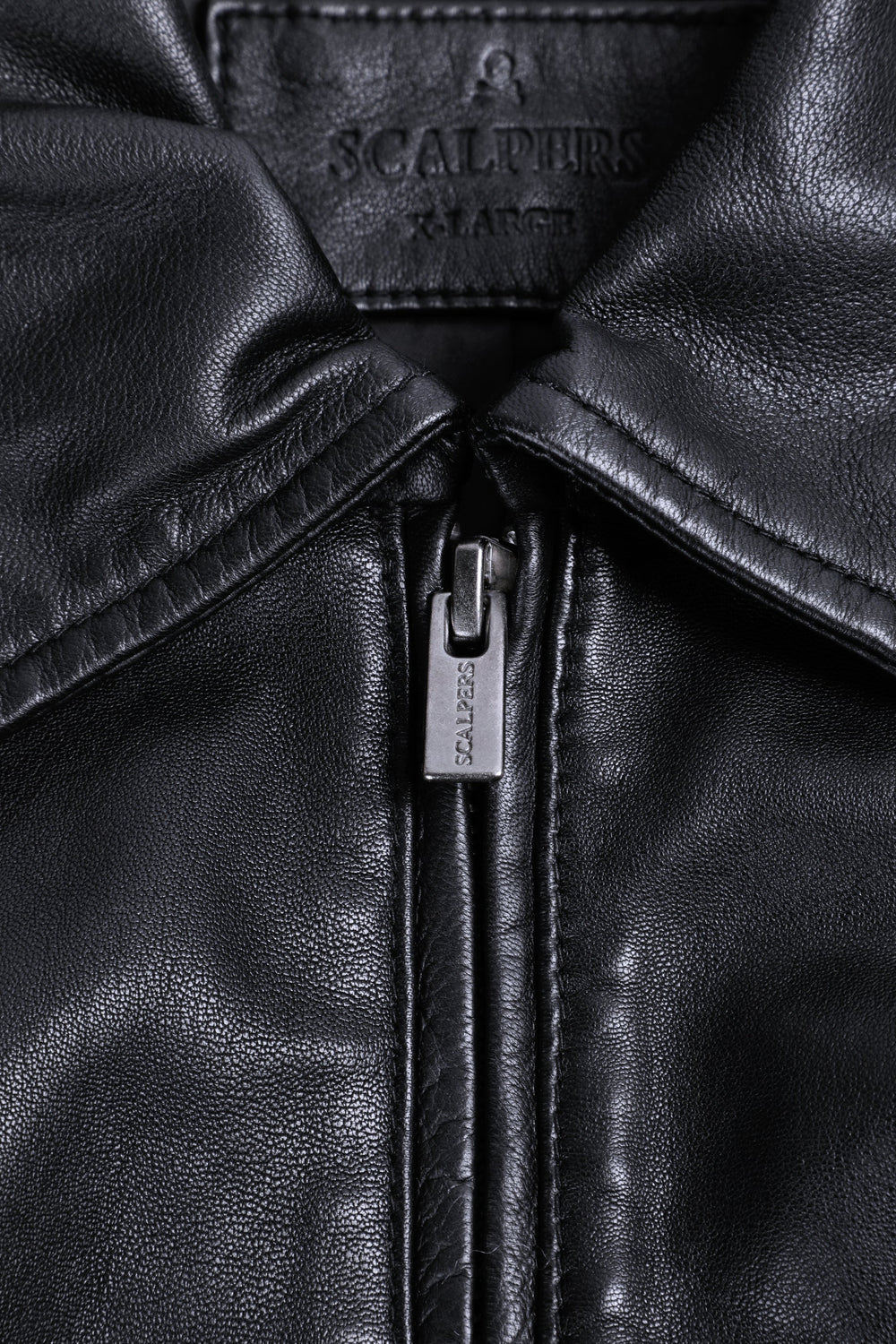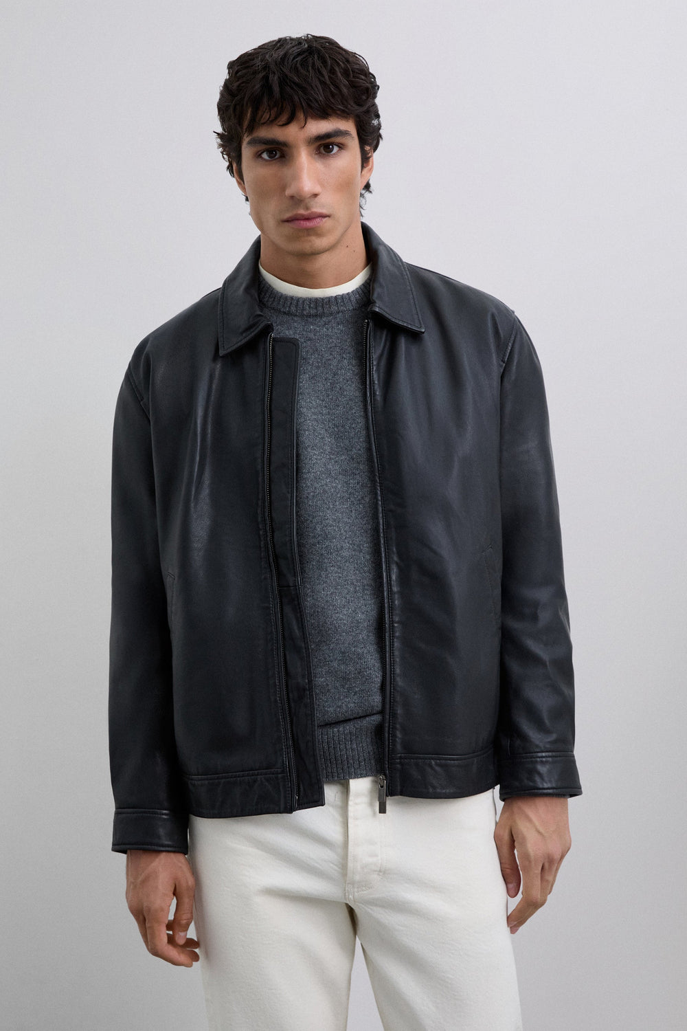 Chaqueta confeccionada en 100% piel. Cuello de camisa. Manga larga. Cierre con doble cremallera. Dos bolsillos frontales. Puños con botón. Detalles bordados de logo y calavera en el interior.