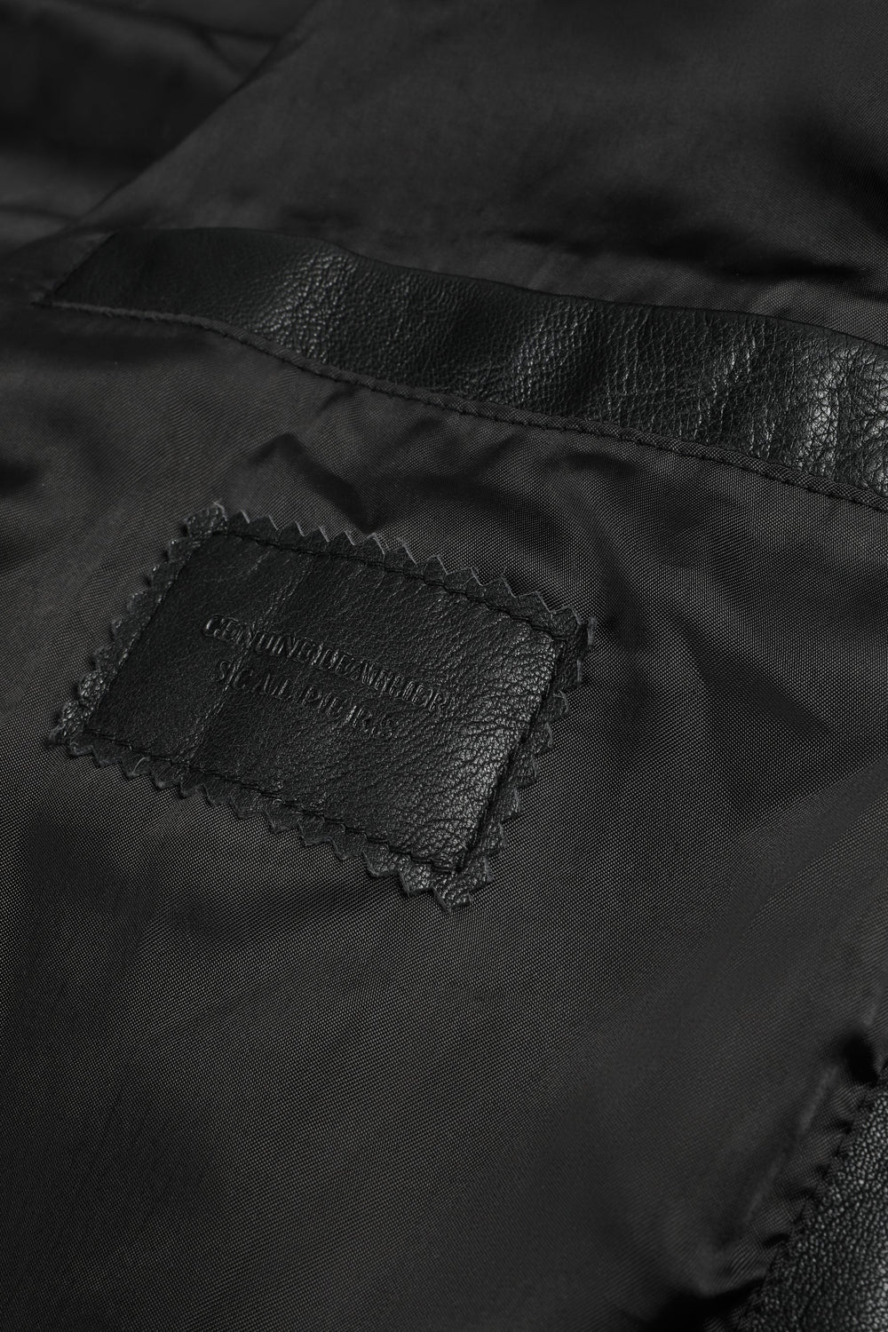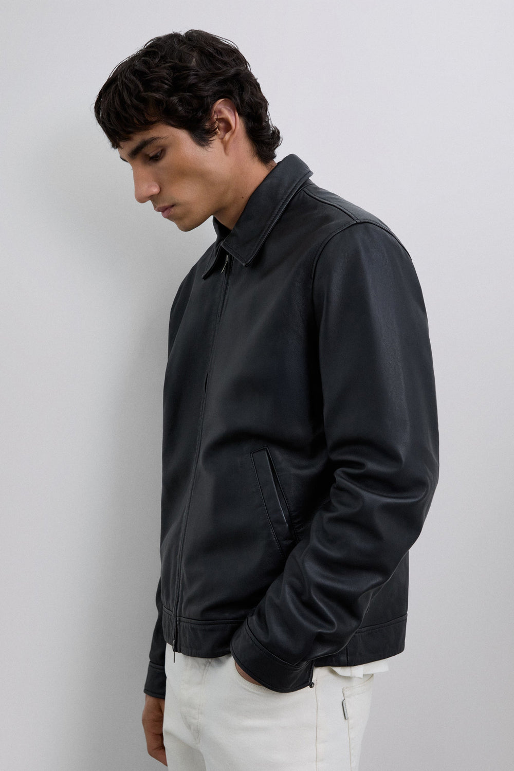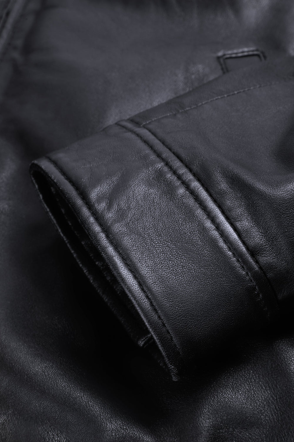 Chaqueta confeccionada en 100% piel. Cuello de camisa. Manga larga. Cierre con doble cremallera. Dos bolsillos frontales. Puños con botón. Detalles bordados de logo y calavera en el interior.