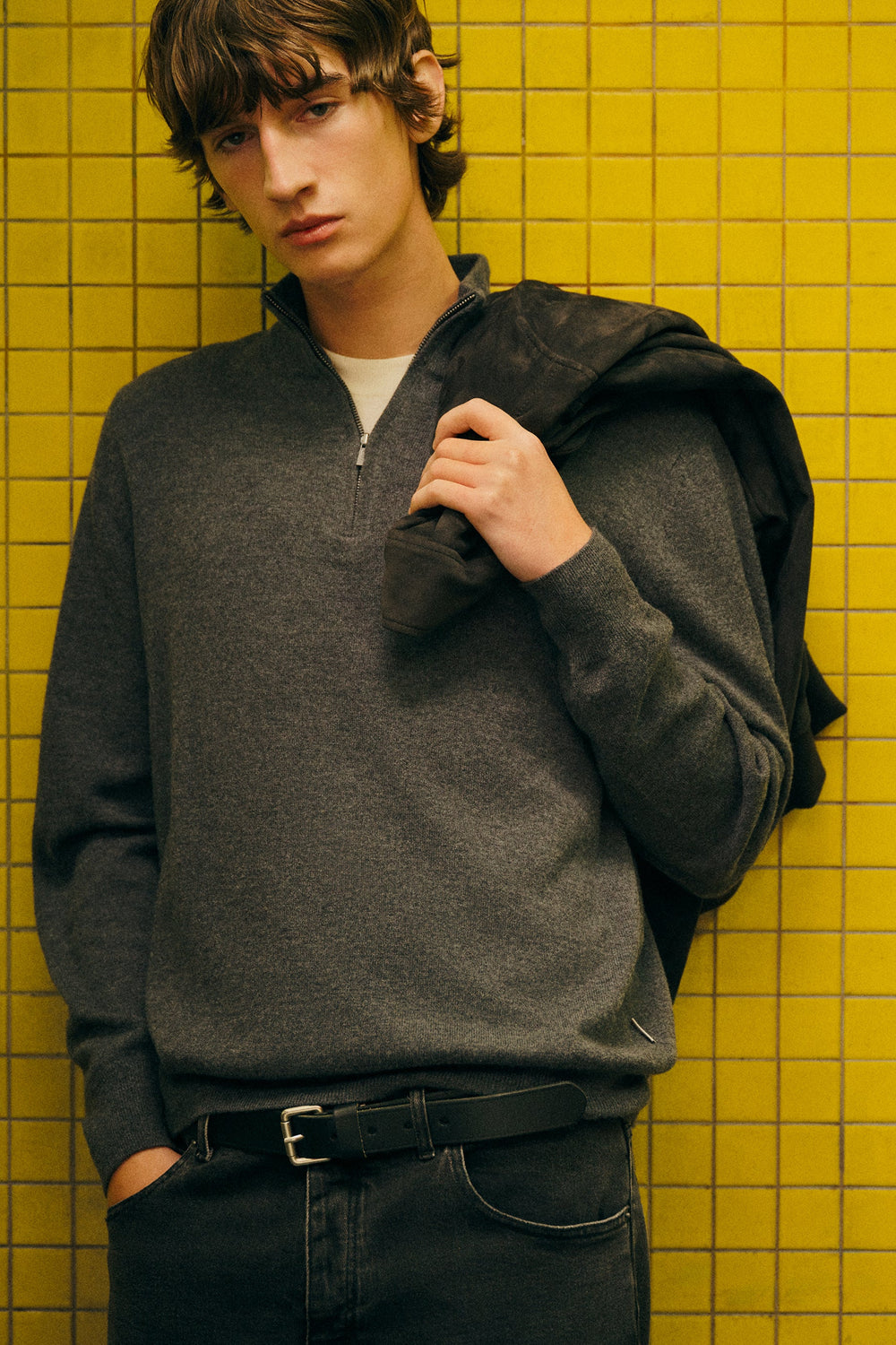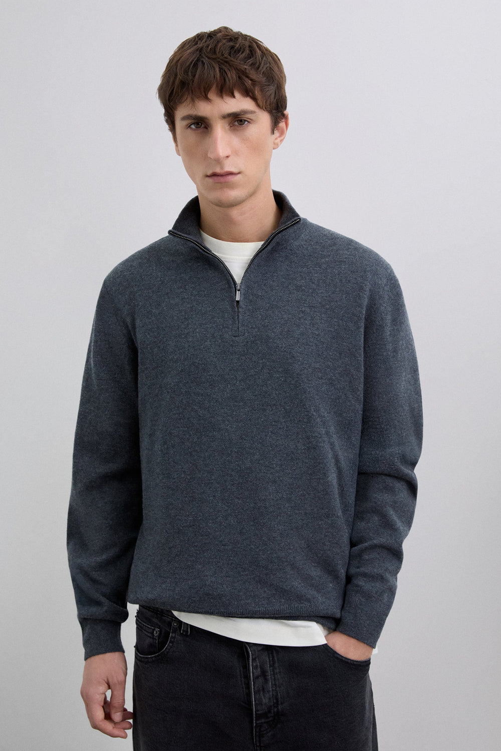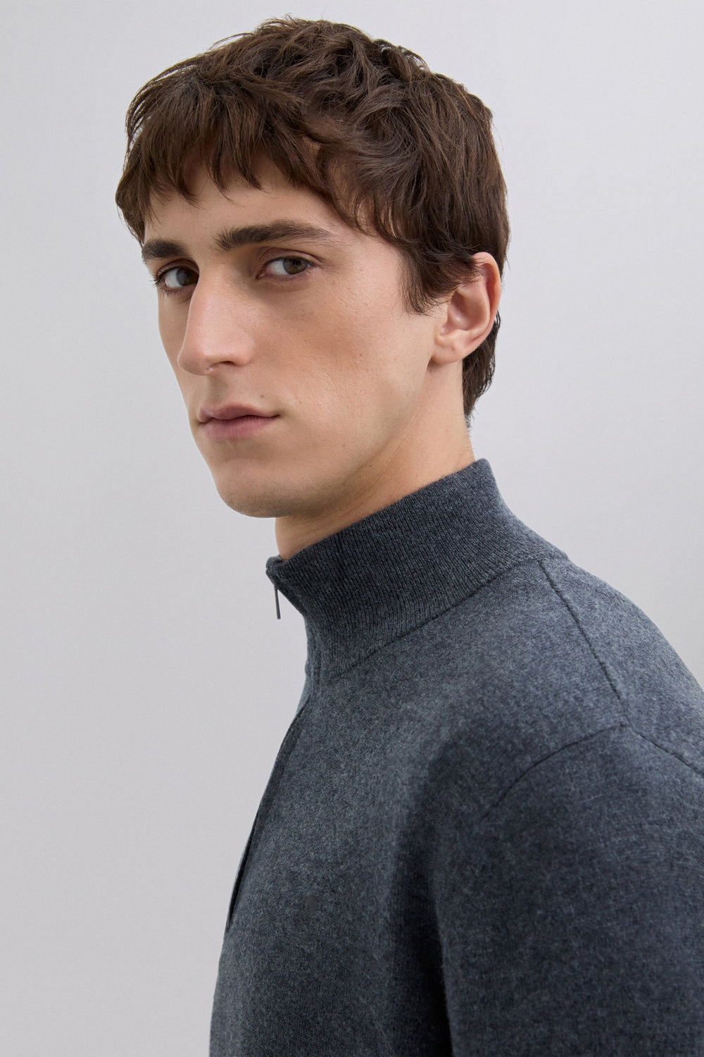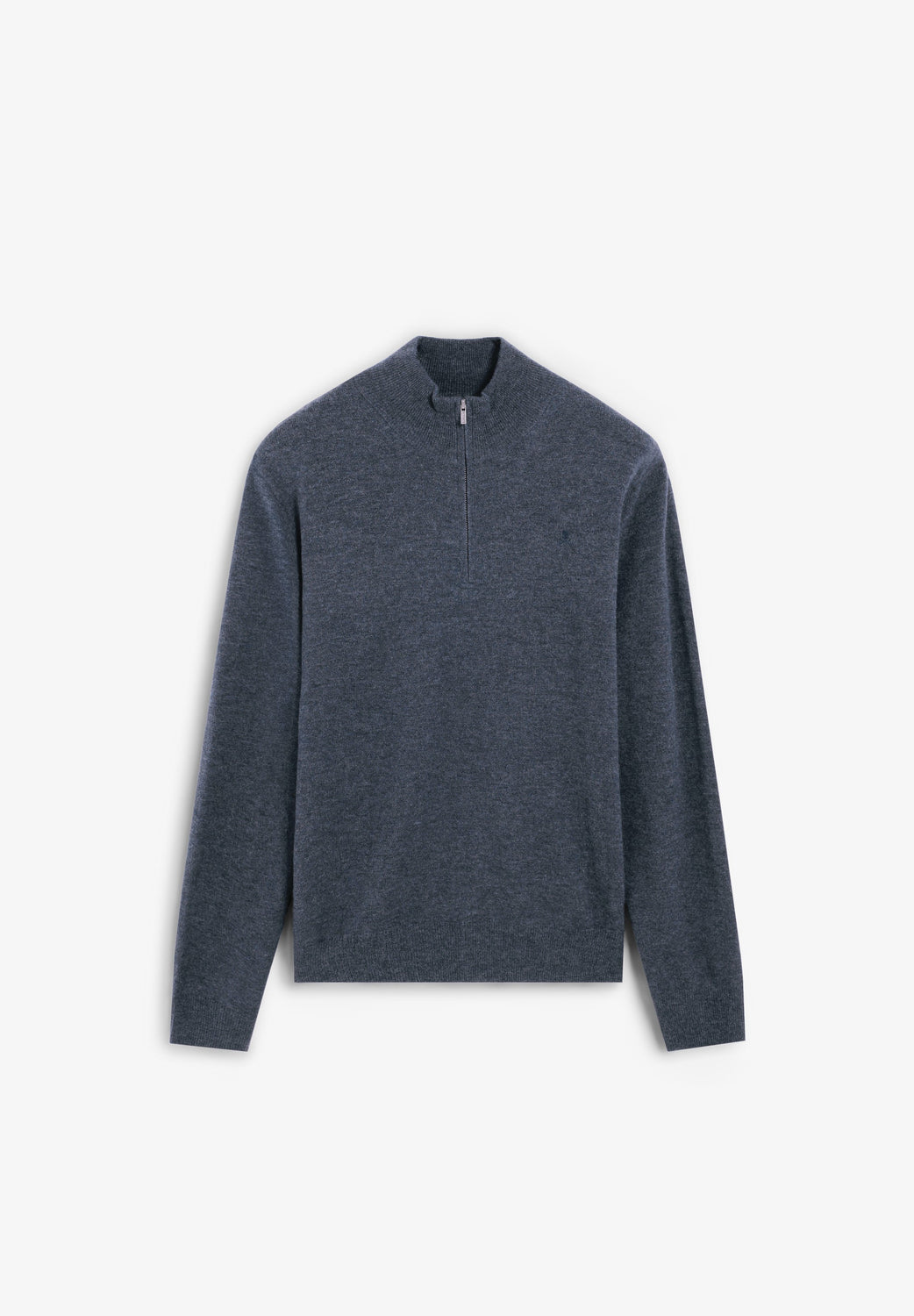 Jersey confeccionado en 100% lana merino. Regular Fit. Cuello de cierre con media cremallera. Manga larga. Detalle de calavera bordada a tono en pecho. Acabados en rib.