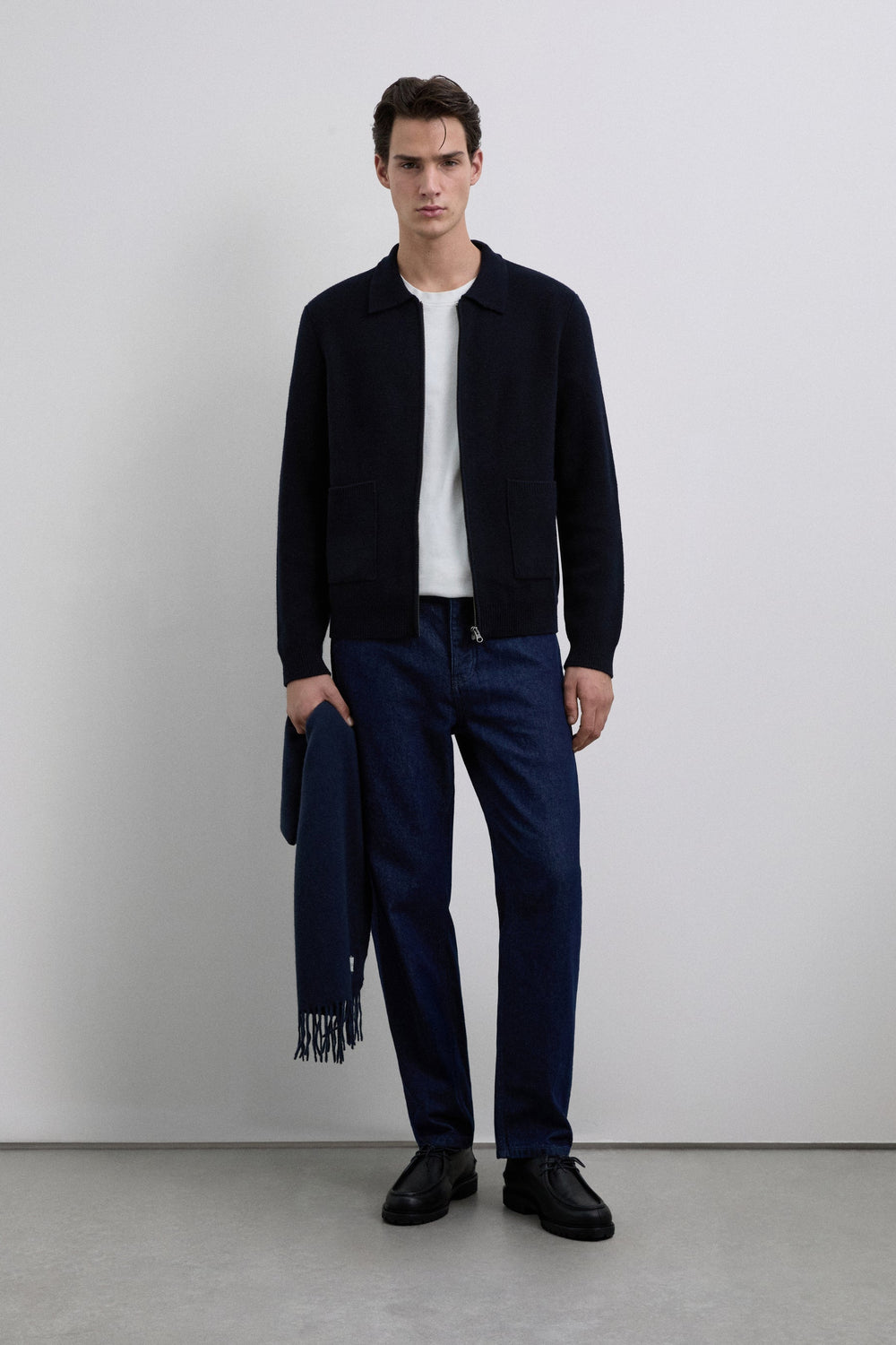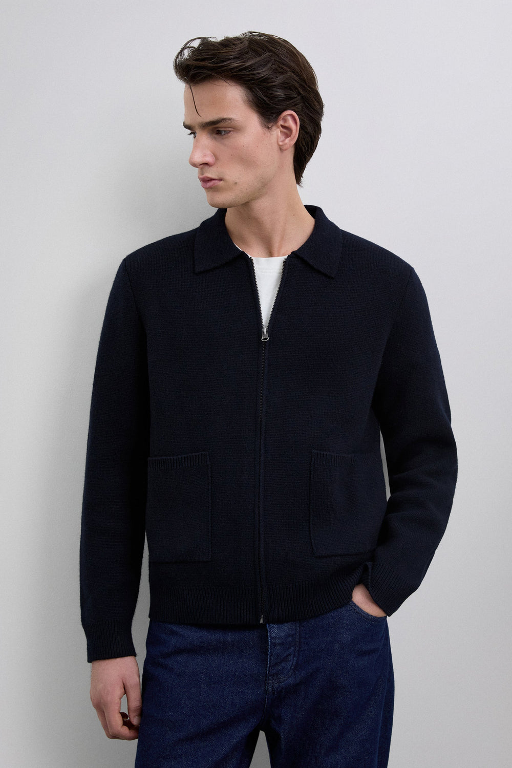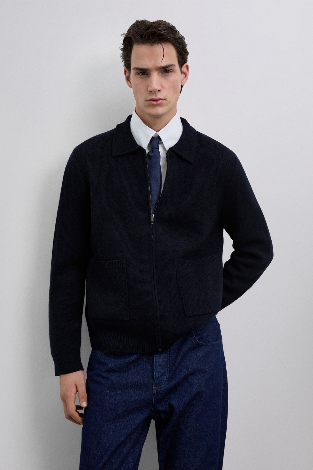 Cárdigan confeccionado en 100% lana merino. Cierre con cremallera. Bolsillos frontales. Manga larga. Regular fit. Acabados en rib.