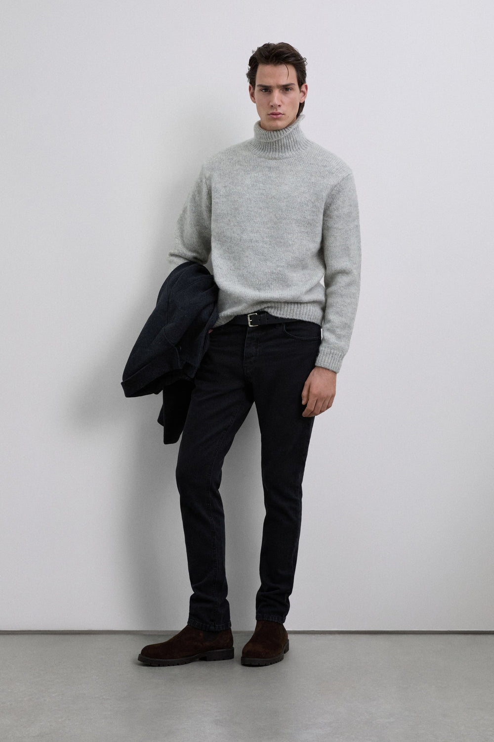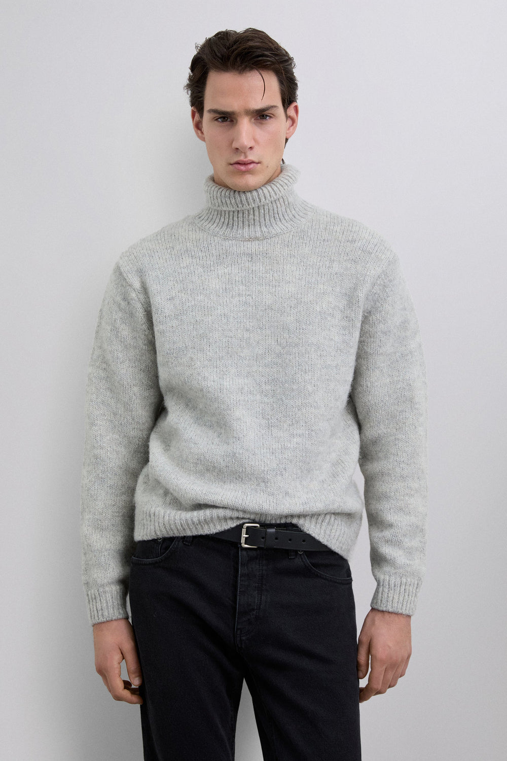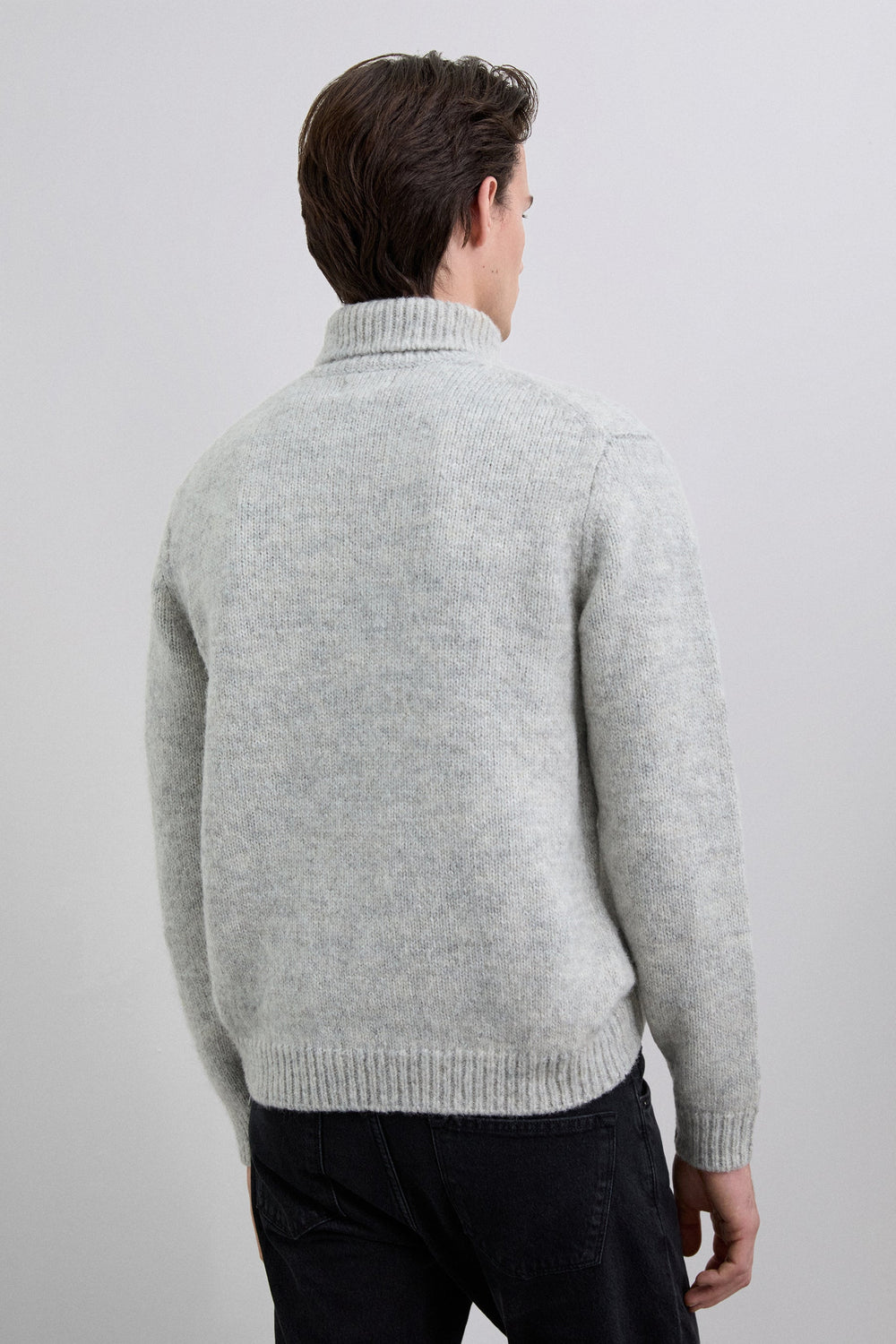 Jersey de mezcla de lana cepillada. Cuello alto. Mangas largas. Corte regular.