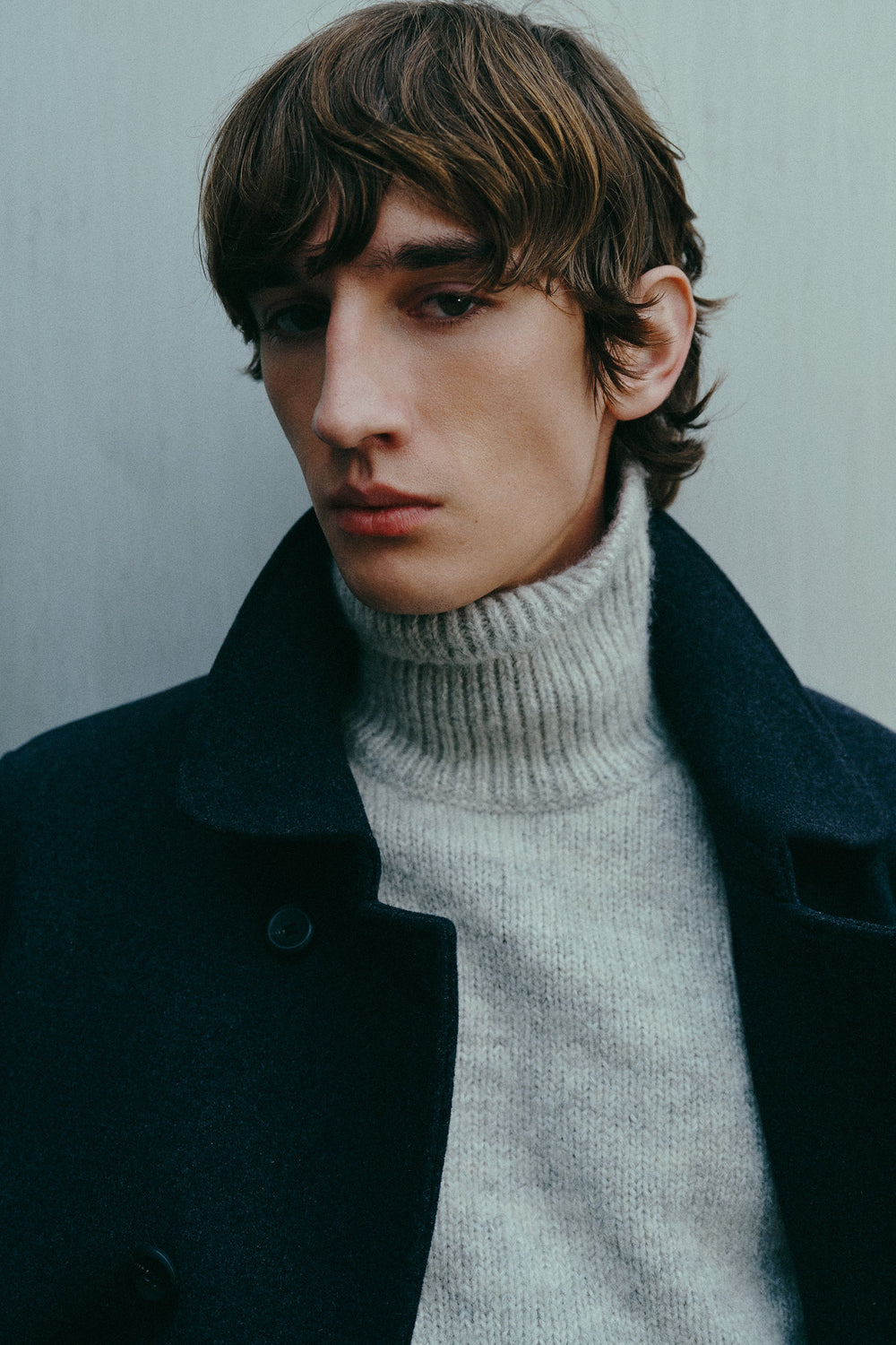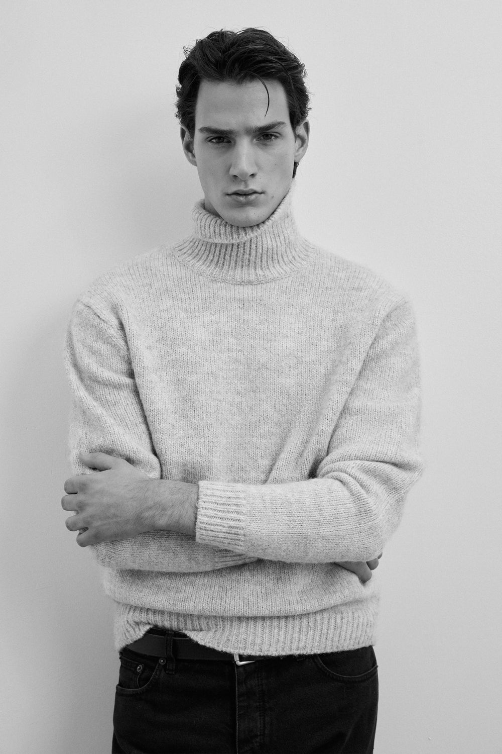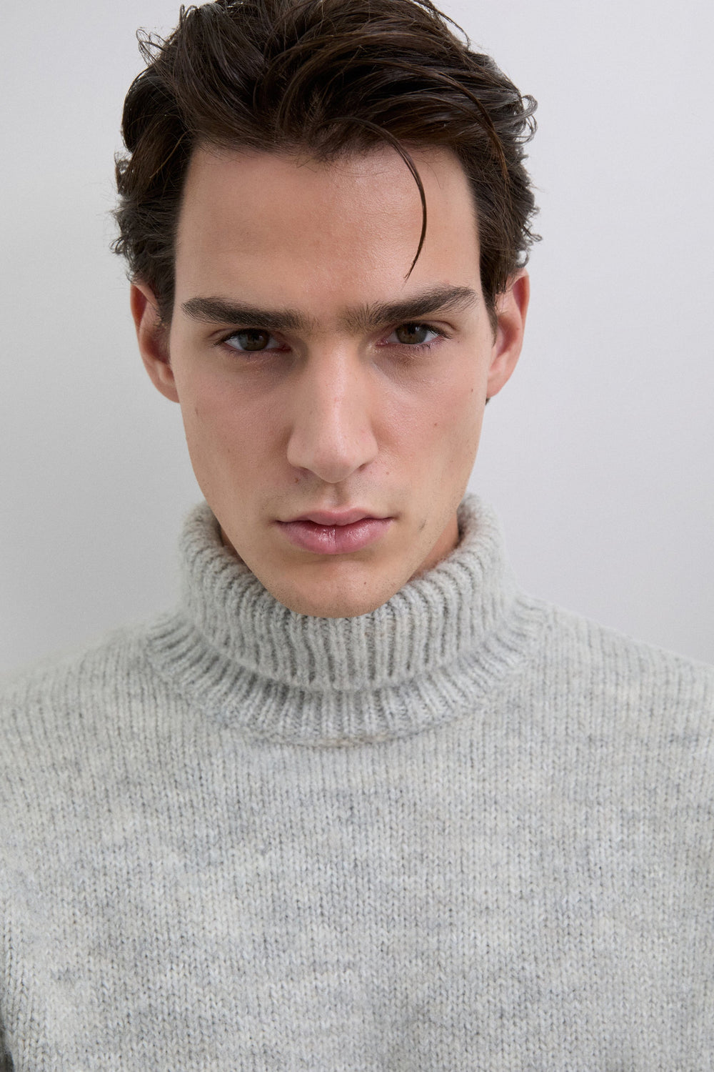 Jersey de mezcla de lana cepillada. Cuello alto. Mangas largas. Corte regular.