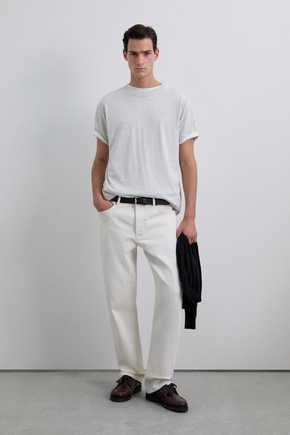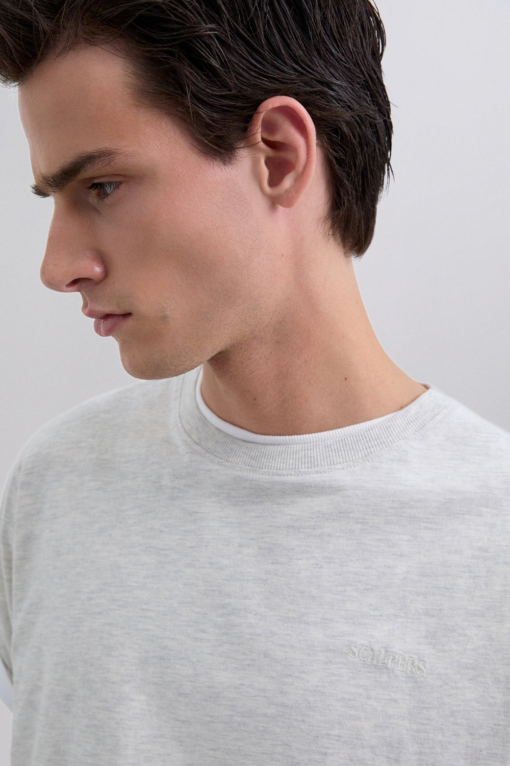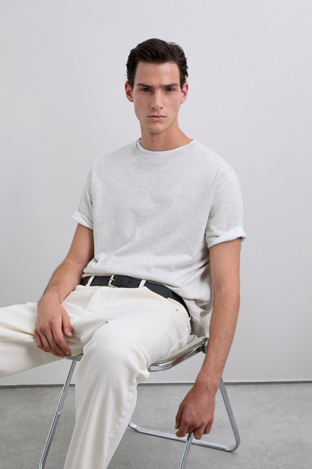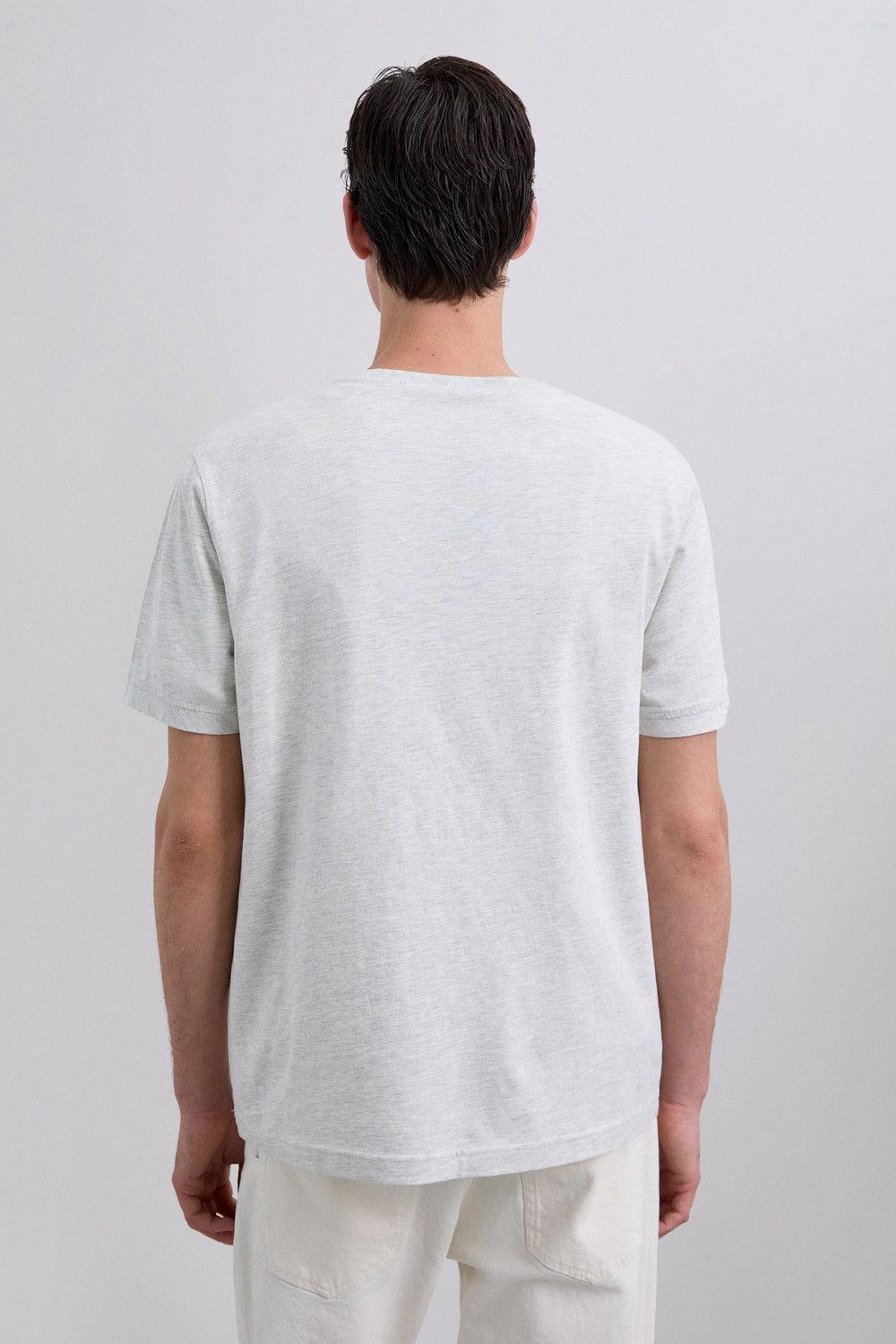 Camiseta confeccionada en 100% Algodón Orgánico. Regular Fit. Manga corta. Cuello redondo. Efecto lavado. Logotipo bordado tono en el pecho. Cuello de canalé.