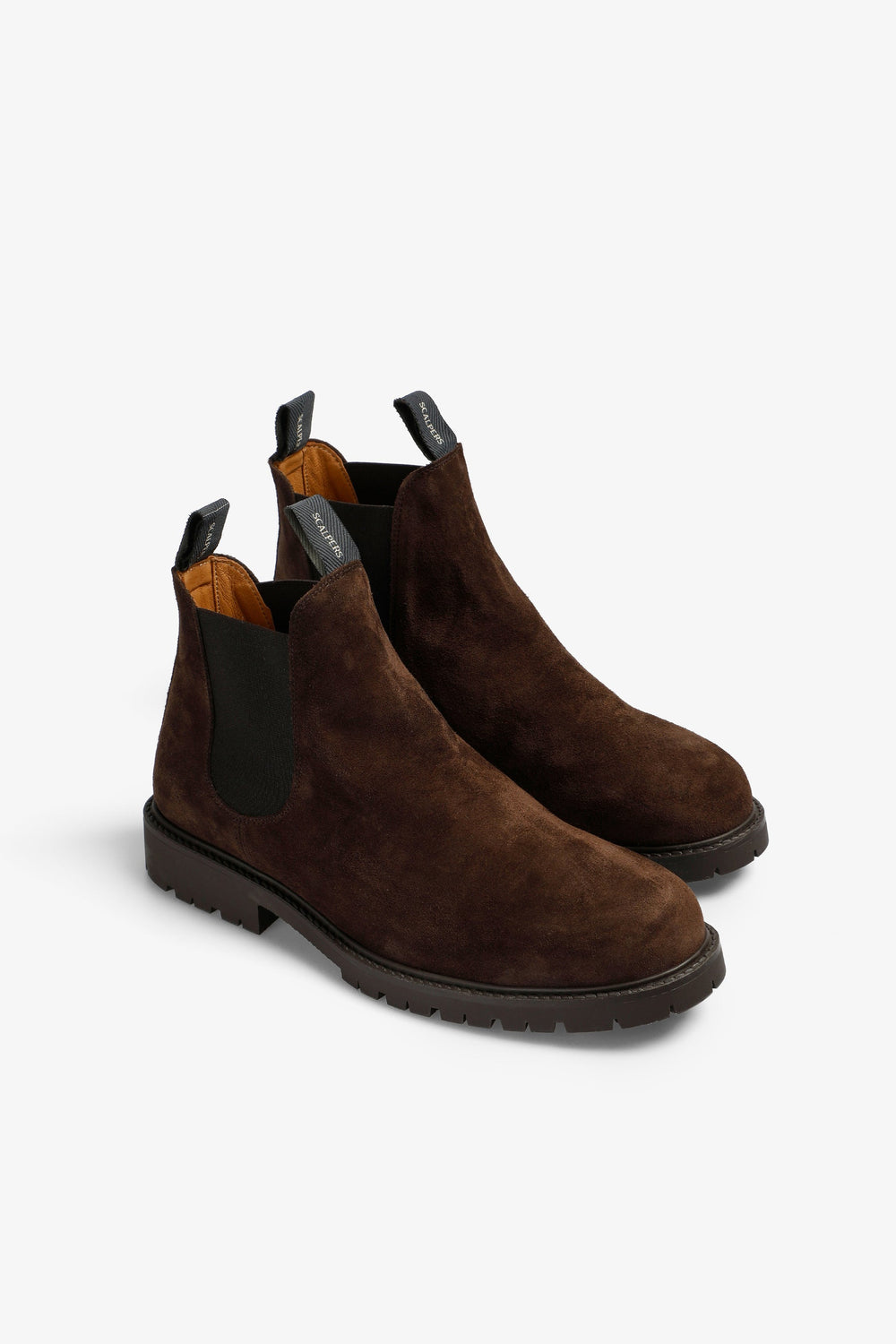 Botas estilo chelsea confeccionada en 100% piel. Elásticos laterales para facilitar el calce. Horma redonda. Suela a tono con ligero tacón. Detalle de etiquetas con logotipo.
