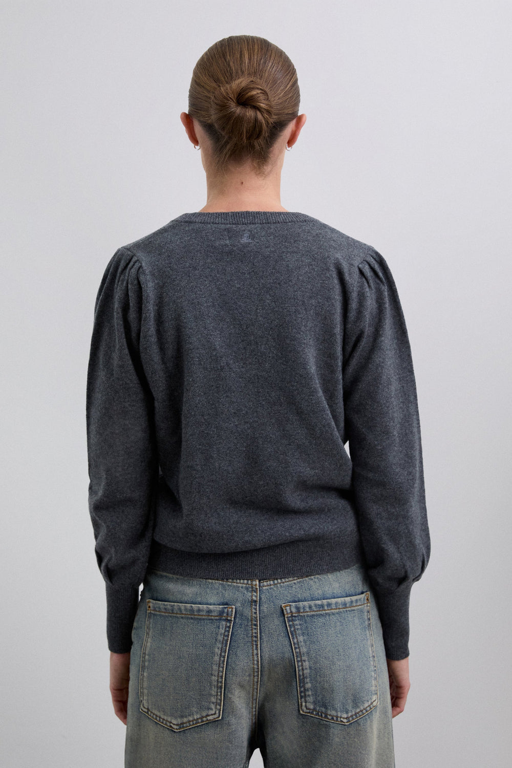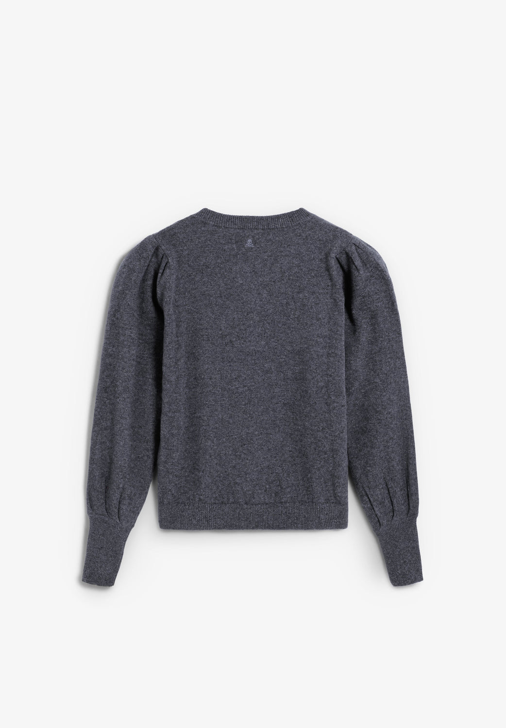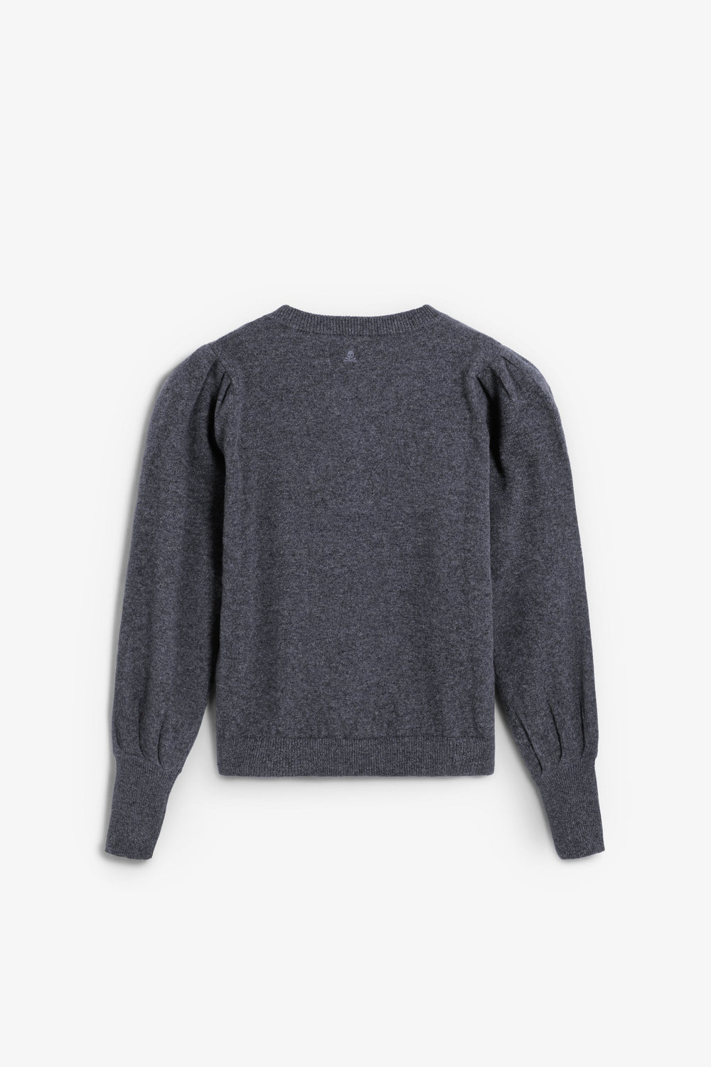 Jersey confeccionado en mezcla de lana con escote en V. Regular fit. Manga larga ligeramente abullonada acabadas en puño en rib. Detalle de calavera bordada a tono en parte trasera.