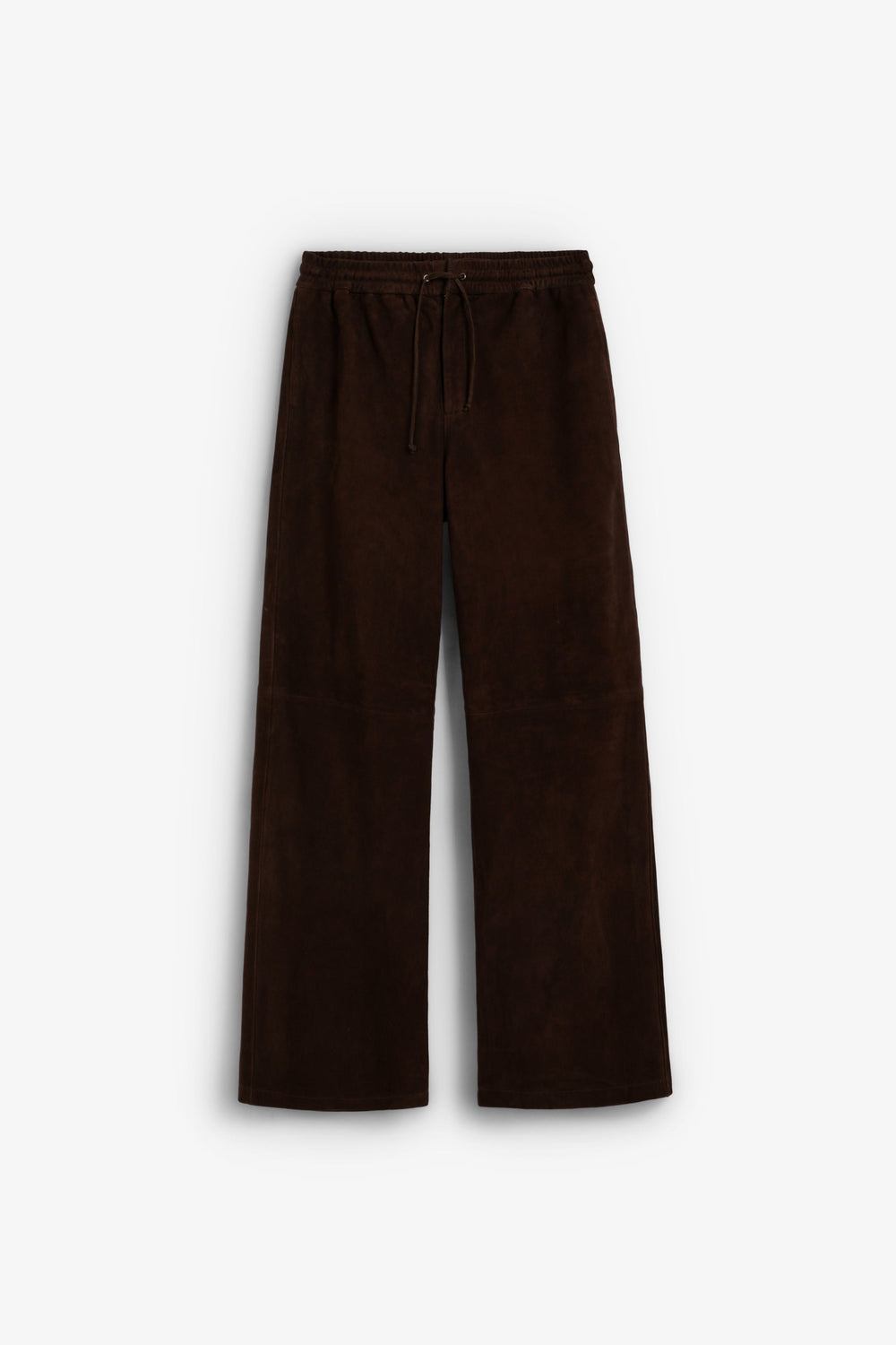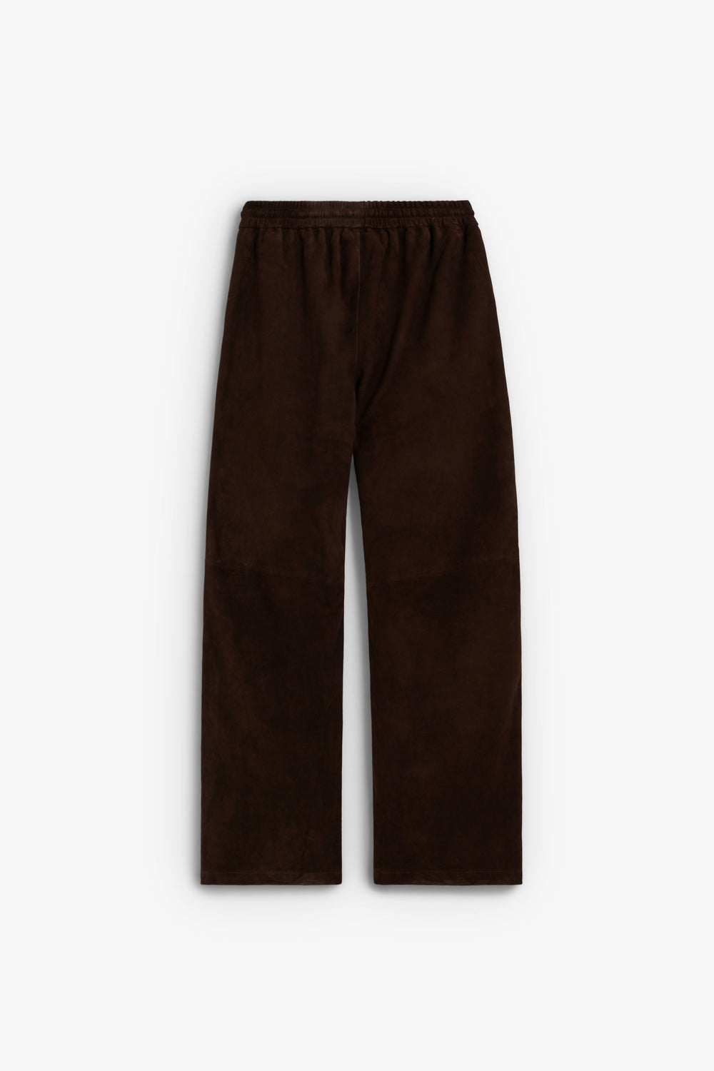 Pantalón confeccionado 100% en ante. Cintura elástica y cierre con lazada. Bolsillos laterales. Corte recto y tiro alto.