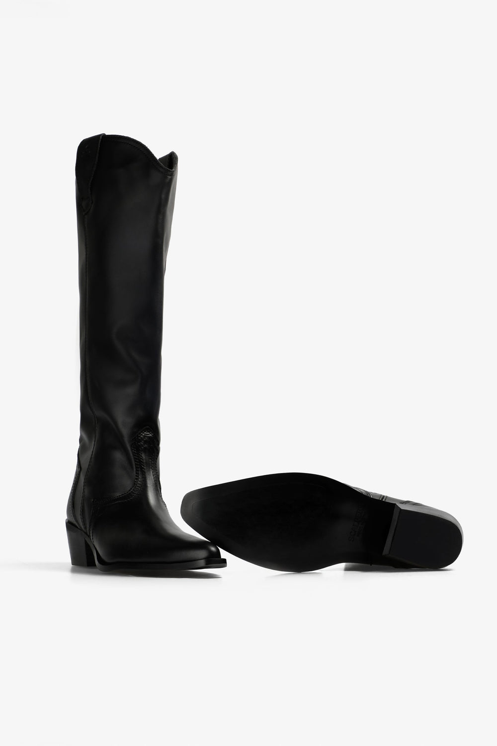 Botas confeccionadas en 100% cuero. Motivo western con costuras a tono. Caña alta.