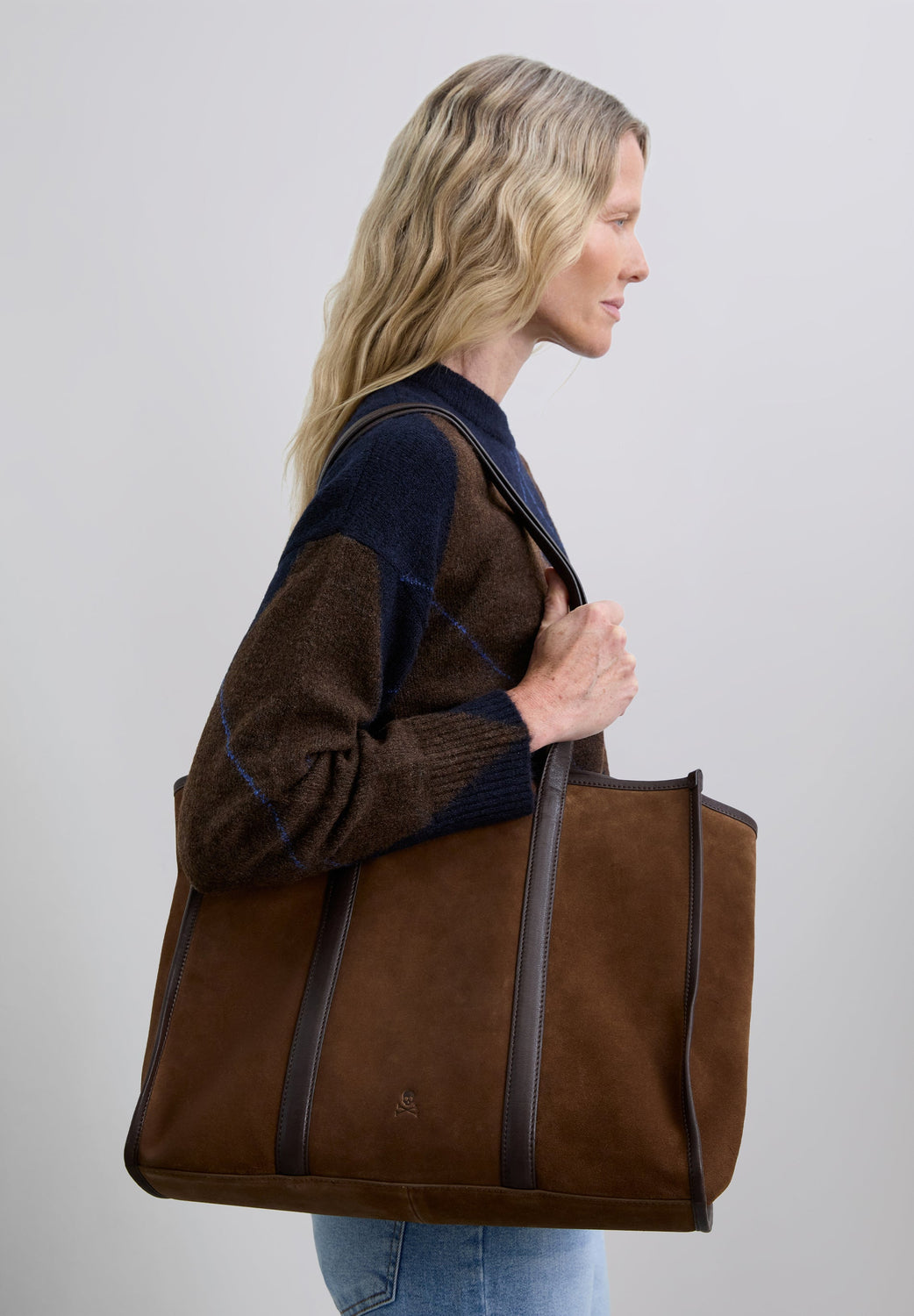 Bolso shopper confeccionado en 100% ante. Detalles en piel a contraste. Cierre con cremallera.
