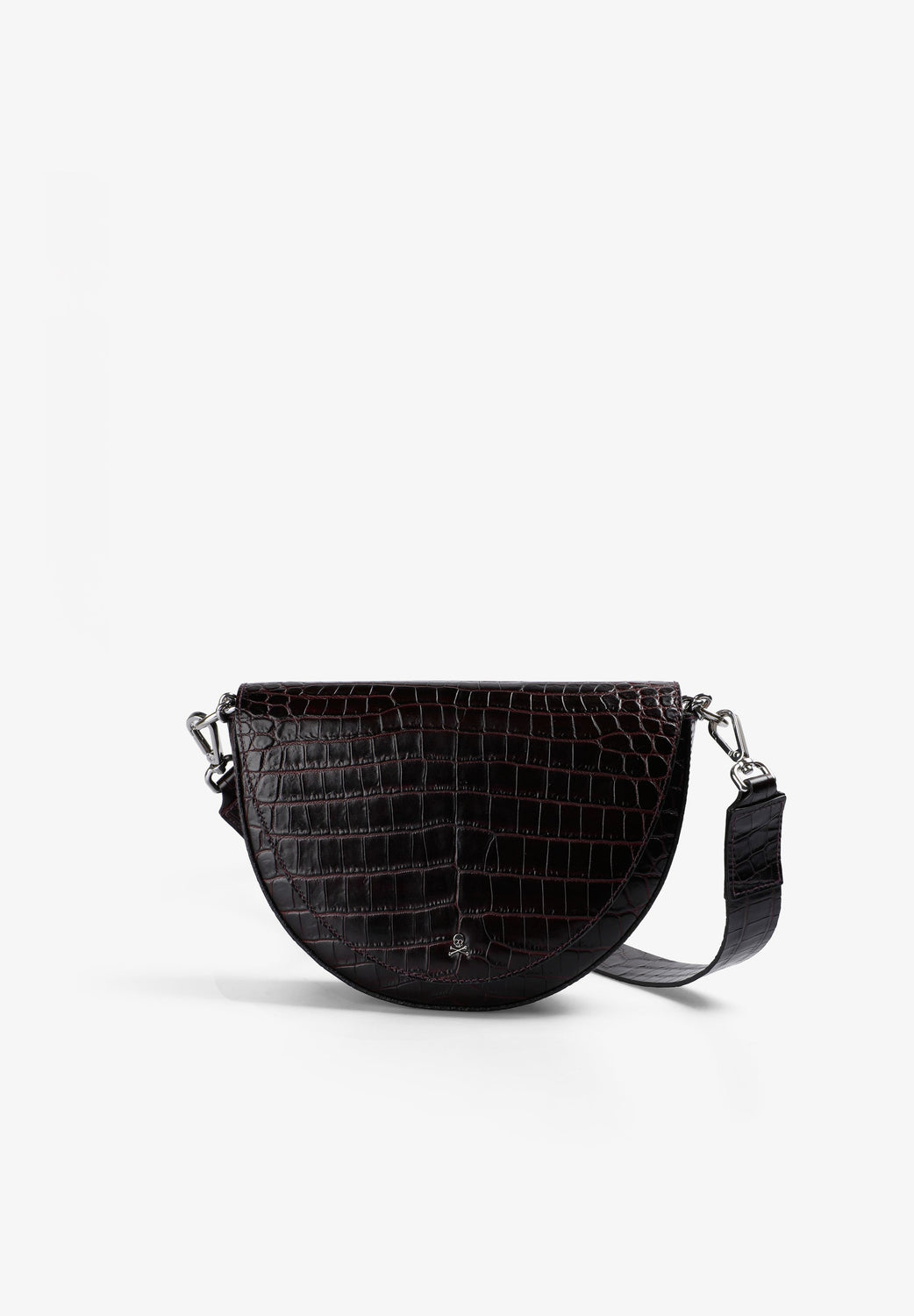 Bolso de piel grabada. Confeccionado en 100% piel. Cierre con solapa con imán. Asa larga desmontable. Detalle de cadena como asa corta