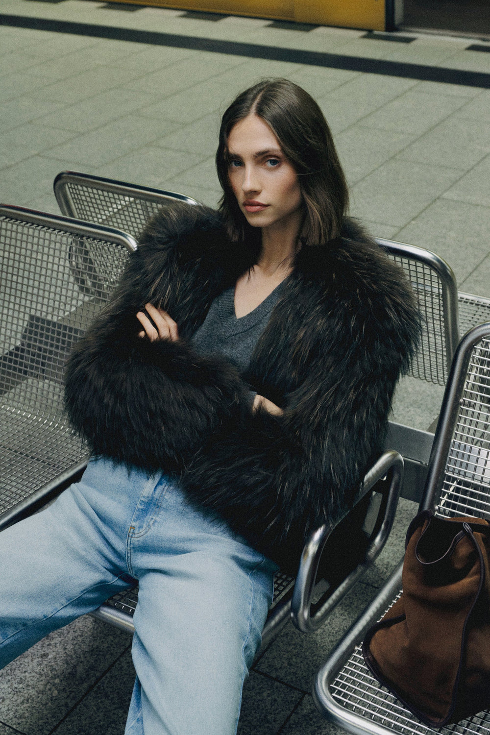 Abrigo premium confeccionado en 100% pelo. Regular fit. Escote en V. Manga larga. Cierre con corchetes.