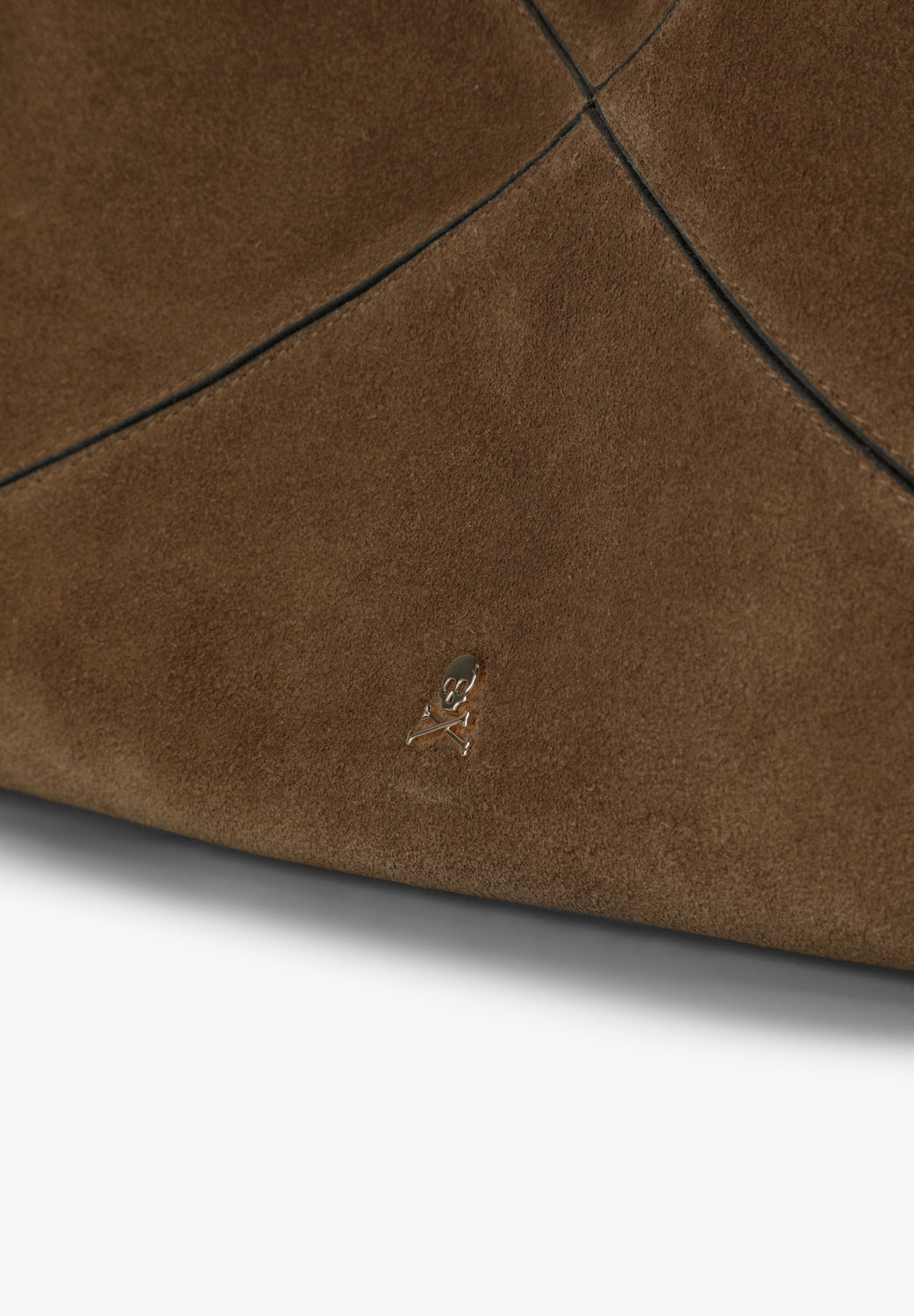 Bolso shopper confeccionado en 100% serraje. Doble asa de hombro. Cierre doble mediante mosquetón y botón imantado en laterales. Calavera metalizada en frontal.