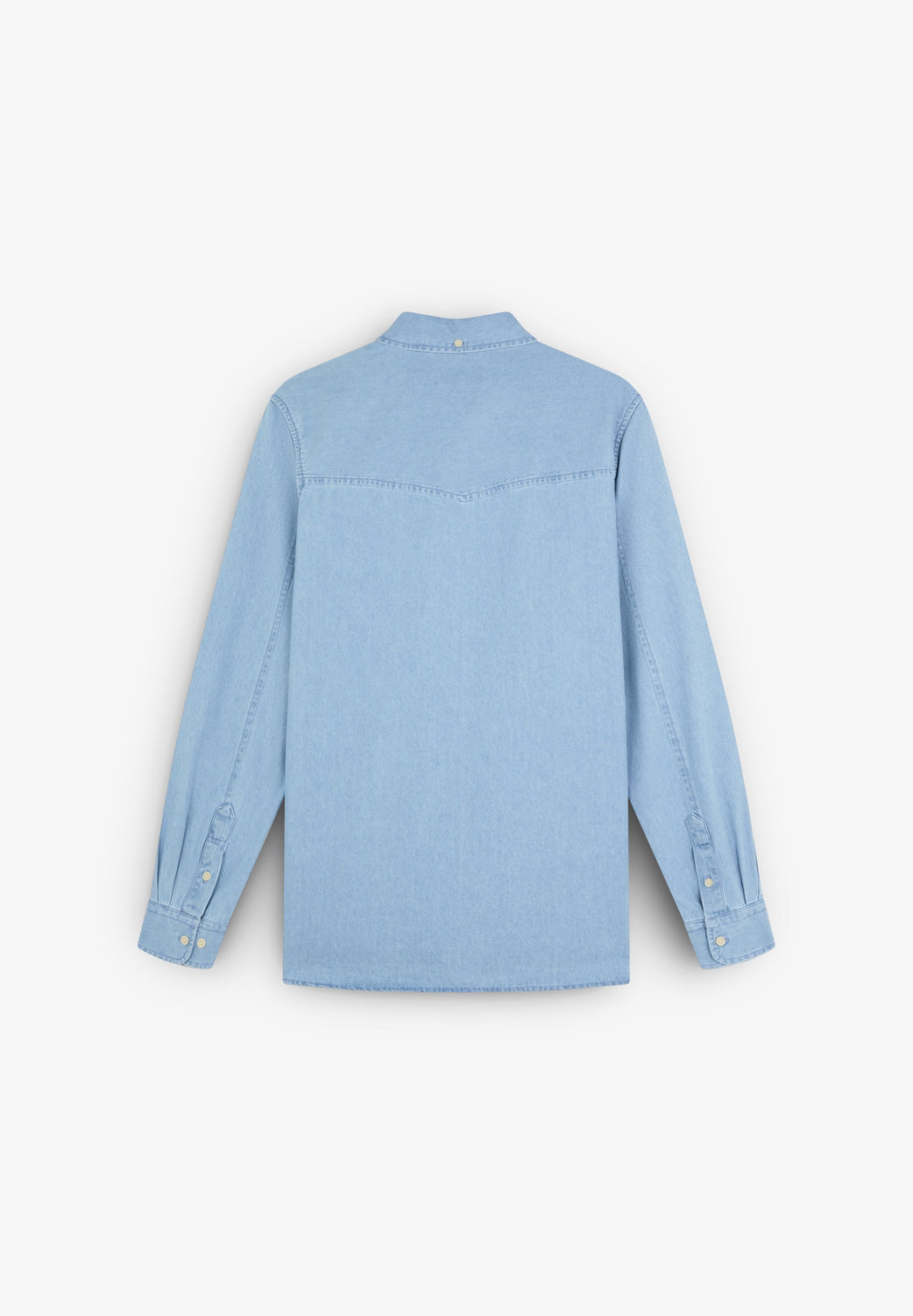 Camisa denim confeccionada en algodón 100% BCI. Corte Regular fit, cuello clásico con botones y cierre con botones. Manga larga acabada en puño simple. Bolsillo de parche en pecho.