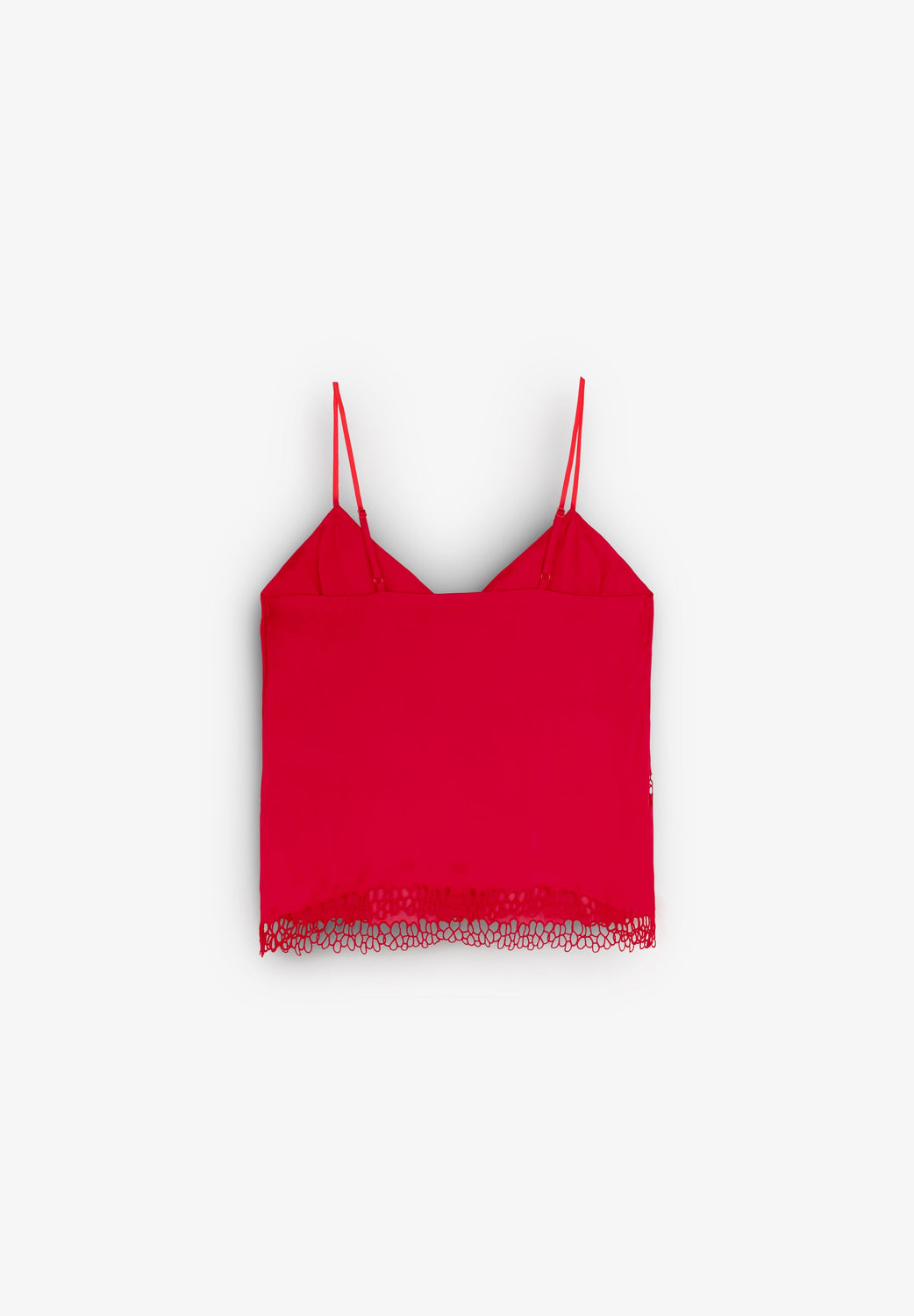 Top de tirantes fluidos. Cuello en pico. Detalle de bordados en escote y cintura.