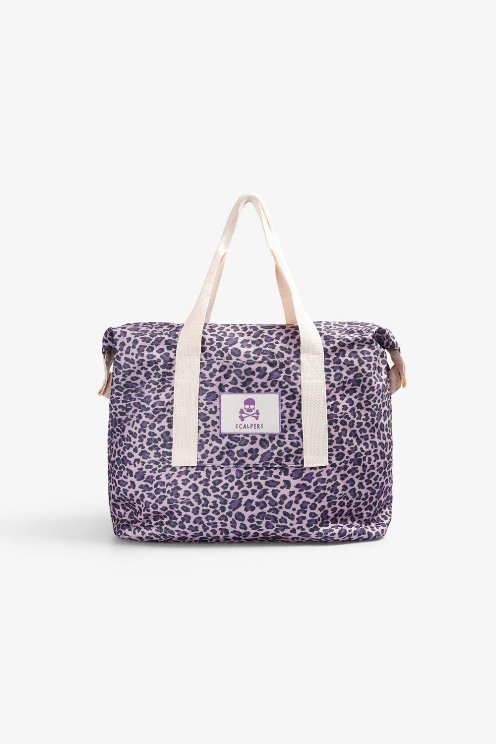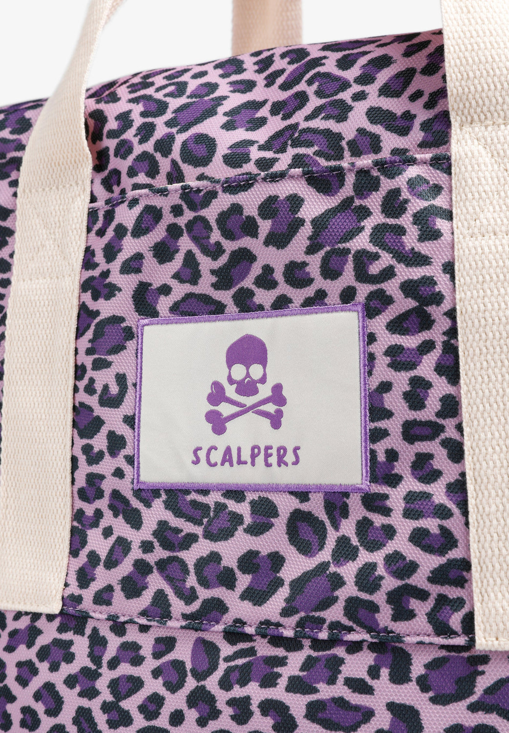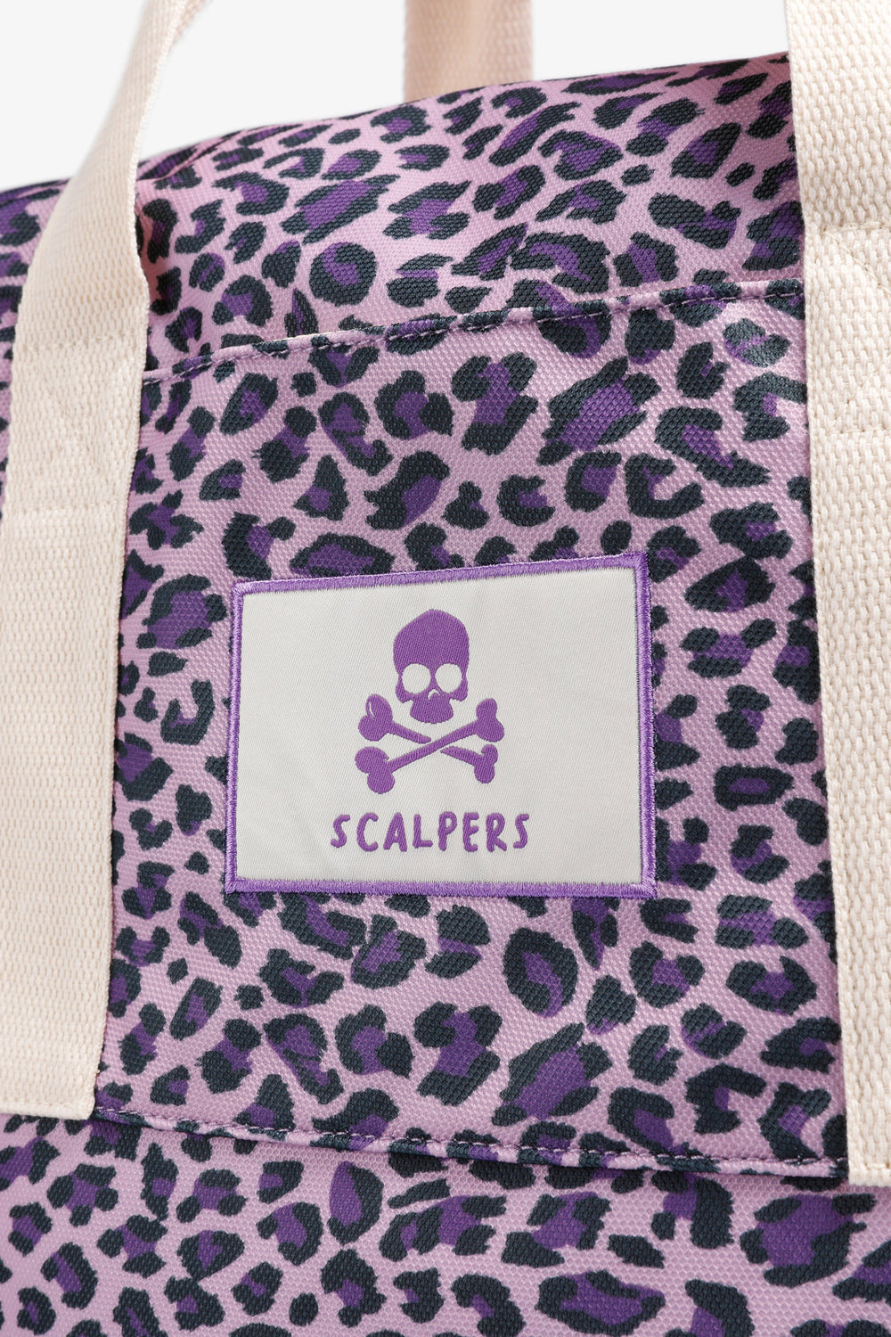 Bolsa de doble asa. Animal print. Etiqueta frontal bordada con logo y calavera. Cierre con cremallera. Detalle de logo en el interior.