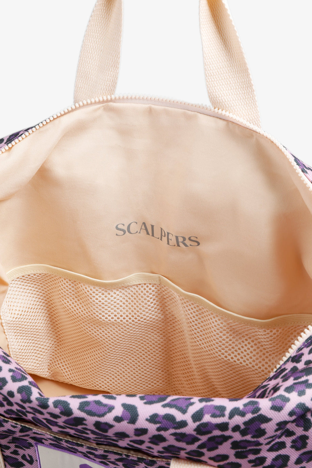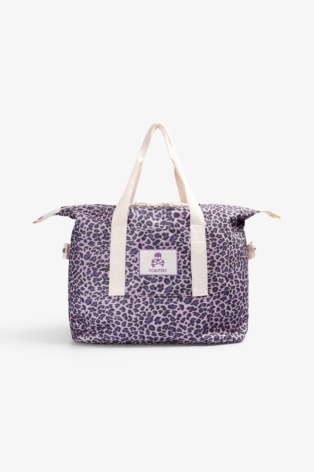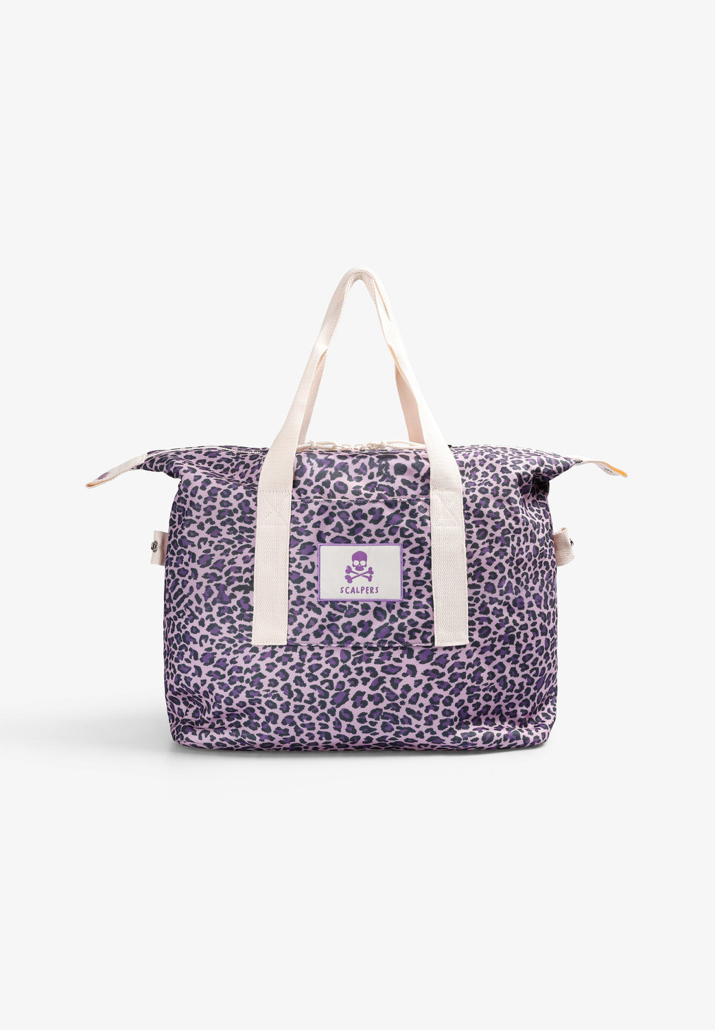 Bolsa de doble asa. Animal print. Etiqueta frontal bordada con logo y calavera. Cierre con cremallera. Detalle de logo en el interior.