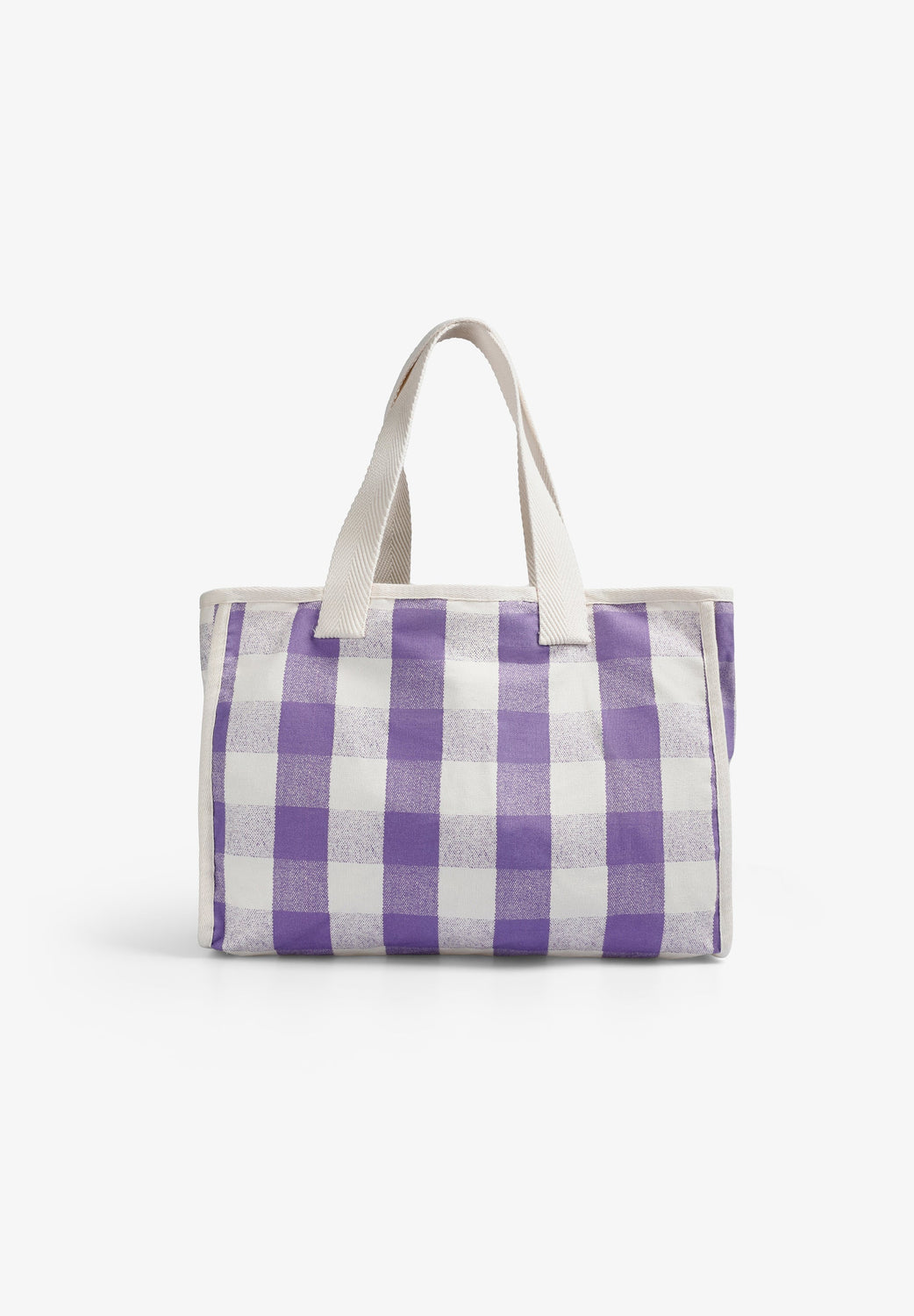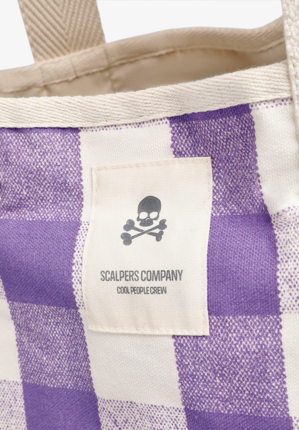 Bolsa shopper confeccionada 100% en algodón. Doble asa. Etiqueta frontal con logo y calavera. Estampado de cuadros