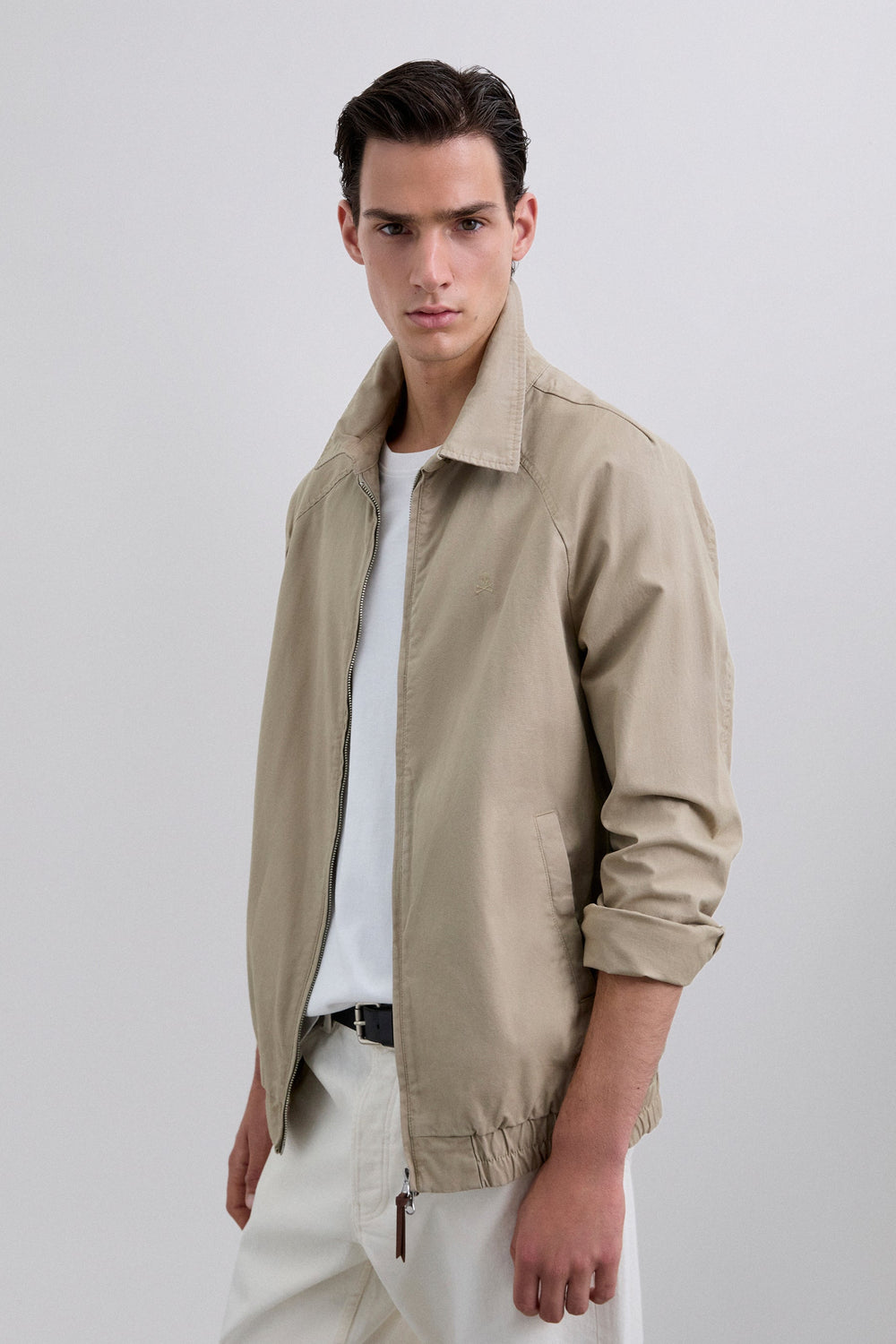 Chaqueta Bomber confeccionada en tejido 100% algodón BCI. Corte ajustado. Cremallera de dos vías. Puños, cintura y cuello acanalados. Dos bolsillos frontales. Forro 100% algodón BCI. Logo bordado.