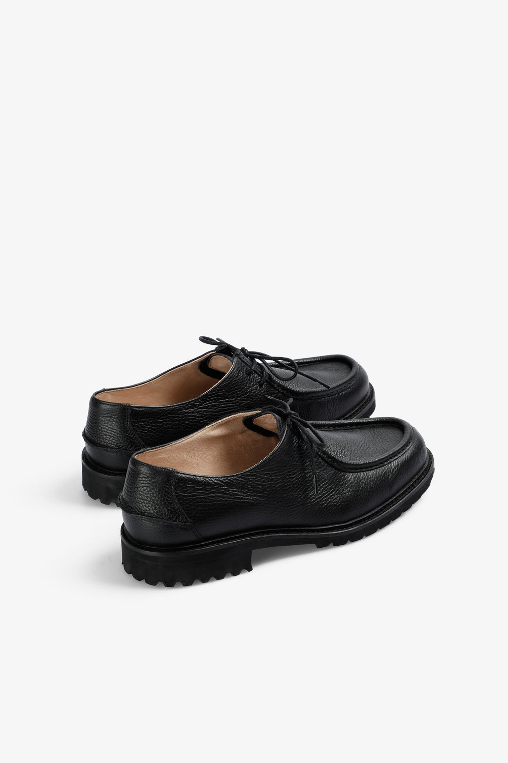 Zapatos confeccionados 100% piel. Detalle de ribete de cuero en toda la parte superior / lengüeta. Etiqueta tejida en la solapa en el talón y plantilla de goma antideslizante. Cierre con cordones.