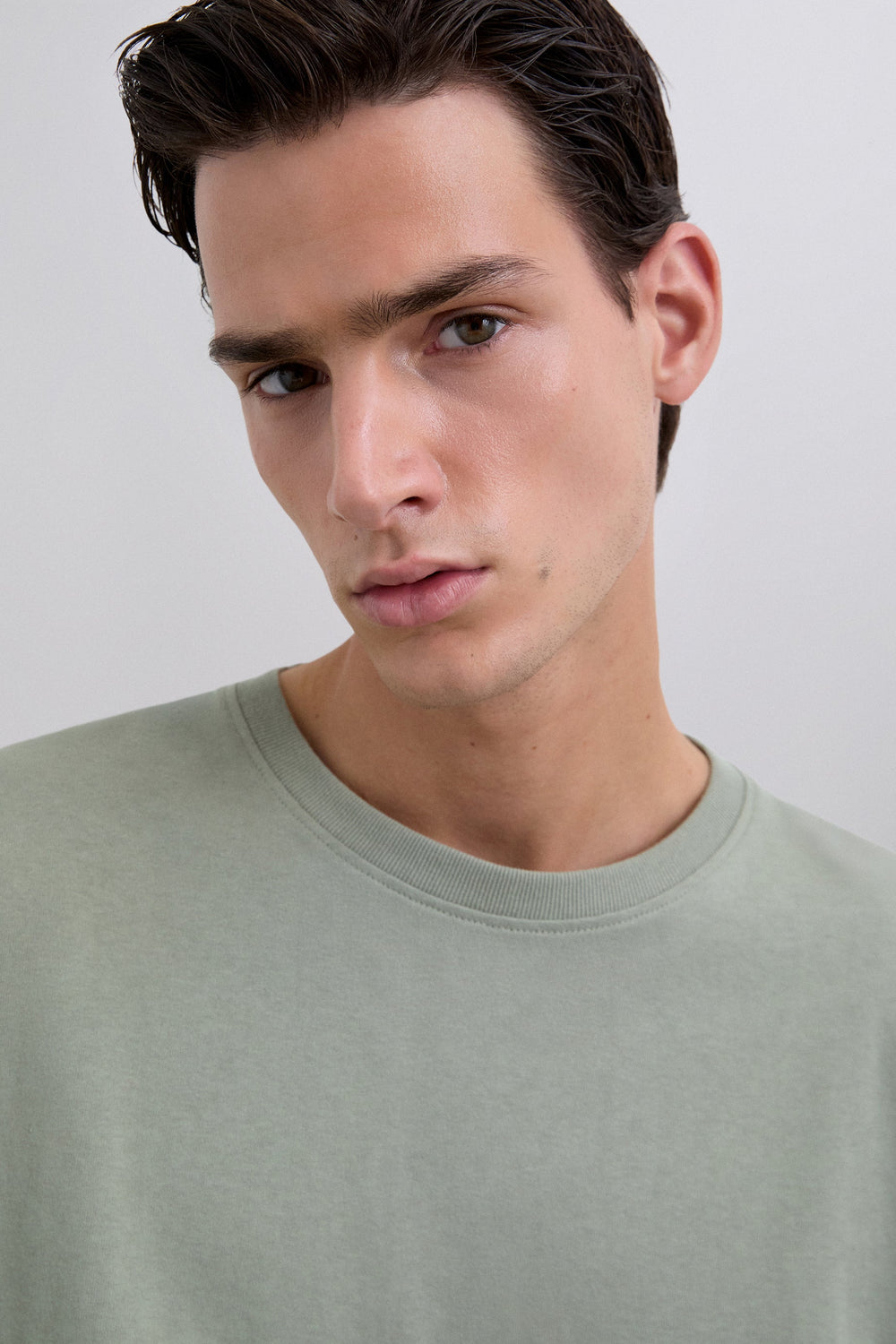 Camiseta confeccionada en 100% Algodón Orgánico. Manga Corta. Cuello Redondo. Boxy fit. Acabados en RIB.