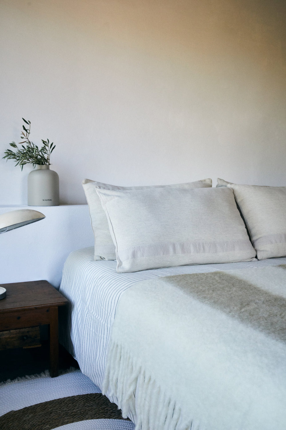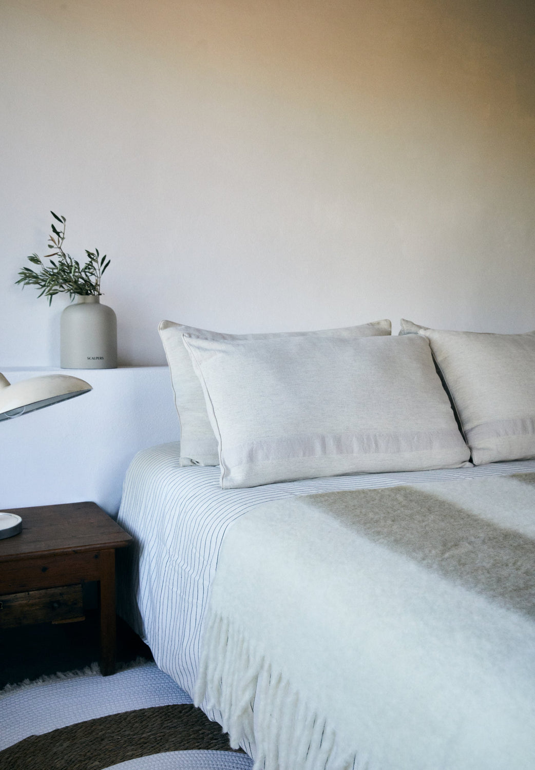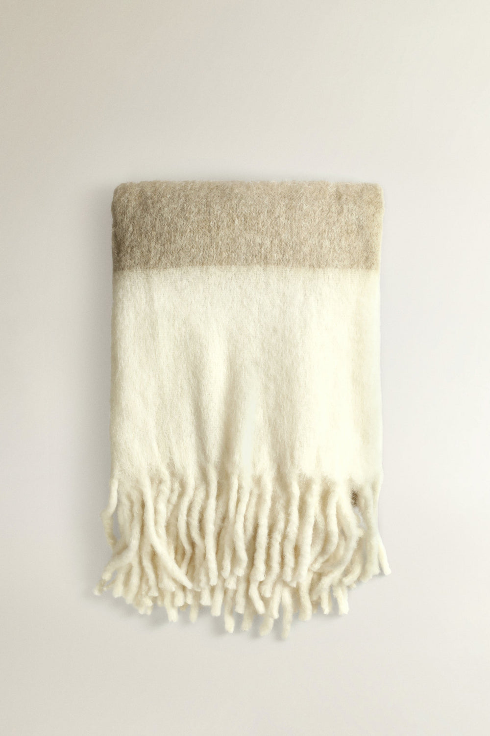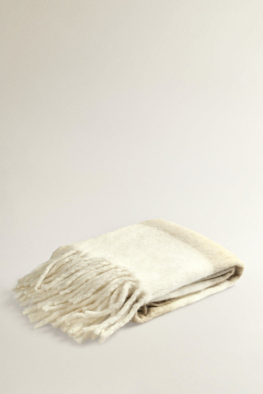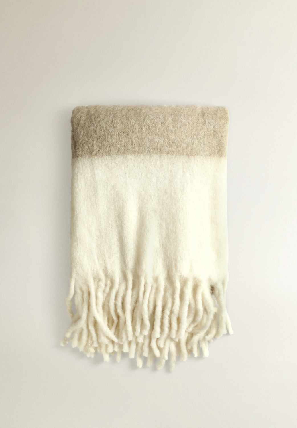 Manta de lana cardada con detalles de líneas a contraste.