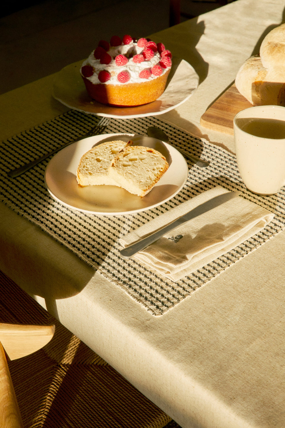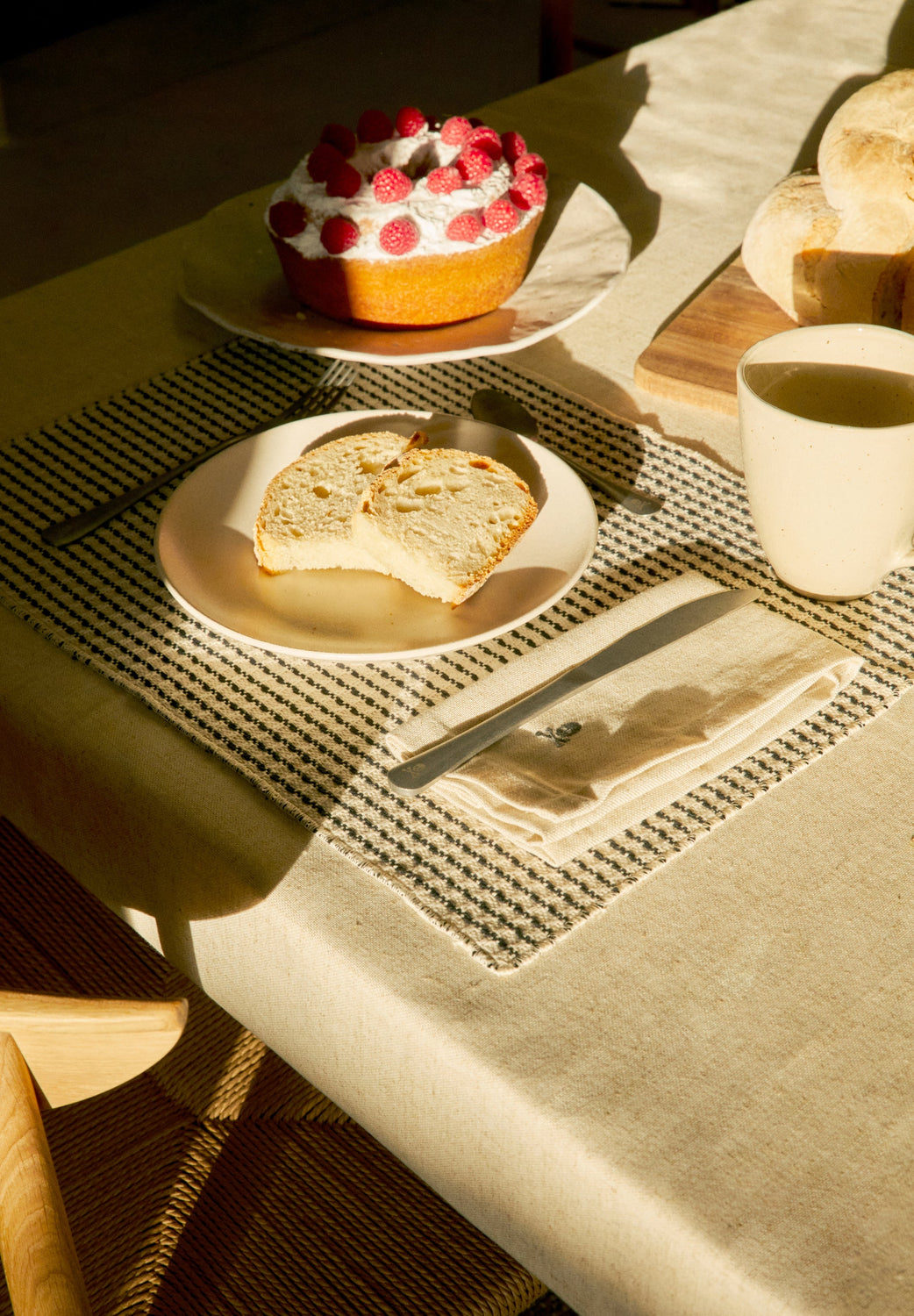Set de dos manteles individuales de estructura con diseño de rayas.
