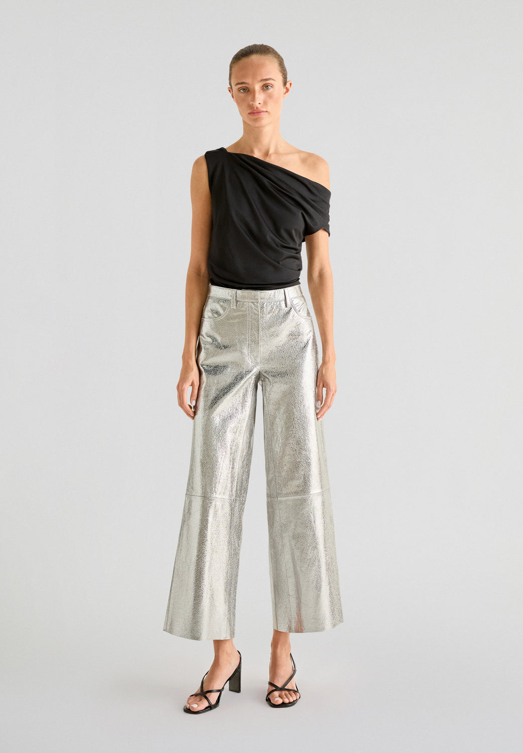 Top asimétrico confeccionado en tejido ligeramente elástico. Slim fit, escote asimétrico y tirante ancho. Detalle de fruncidos.