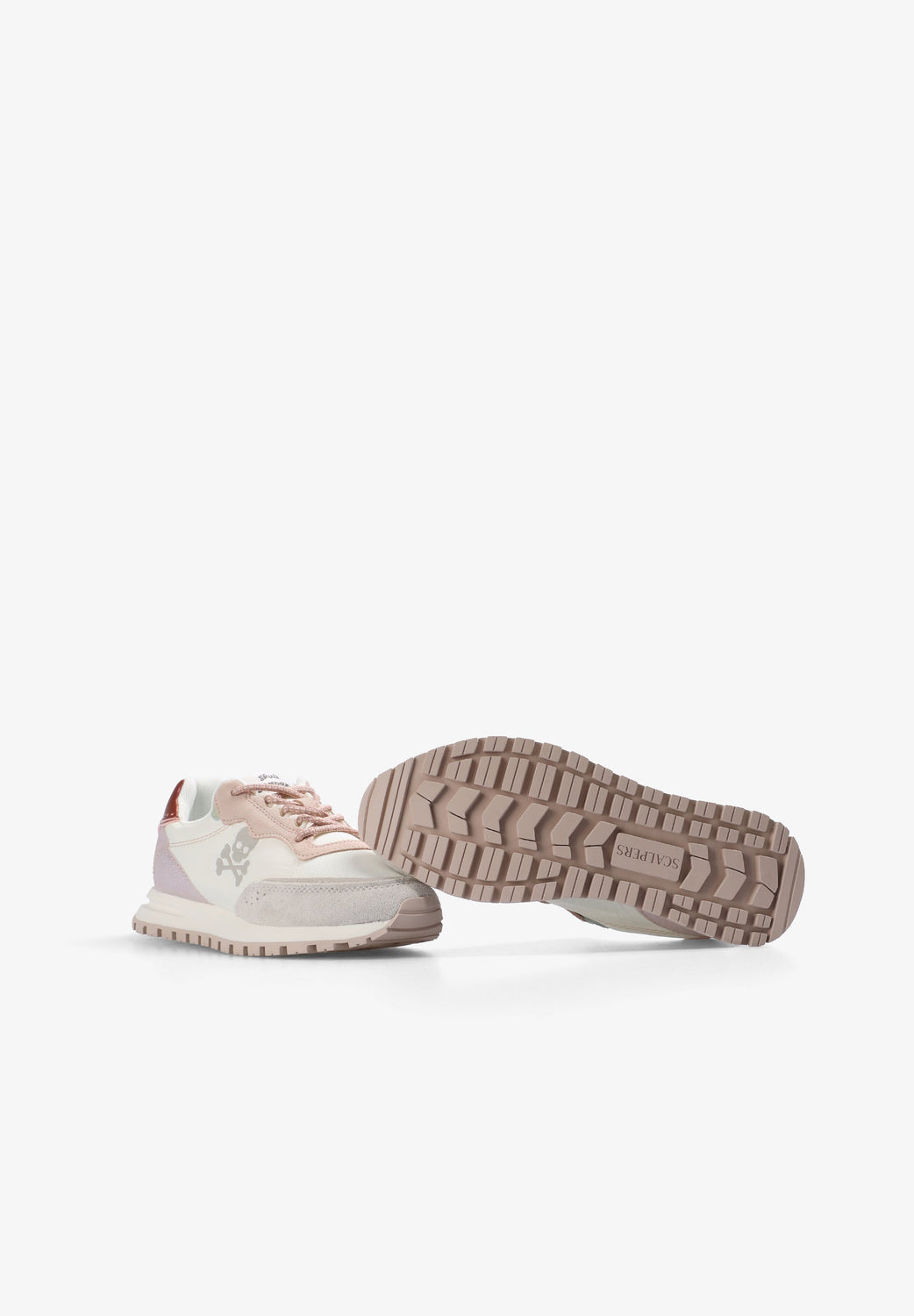 Sneakers confeccionada en nylon con detalles en serraje. Cierre con cordones, suela de goma pronunciada dentada y malla en la parte delantera. Calavera lateral y etiqueta personalizada.