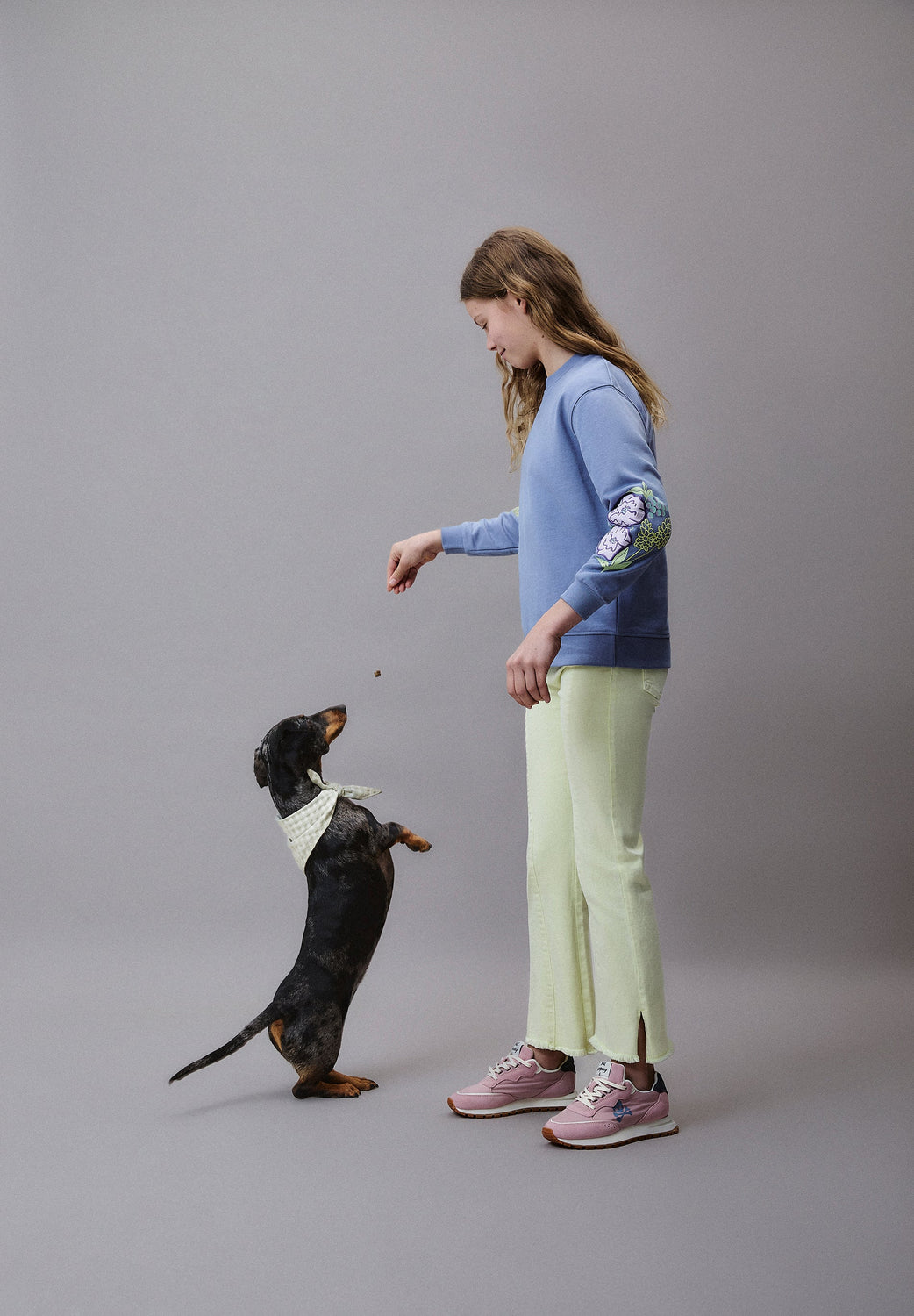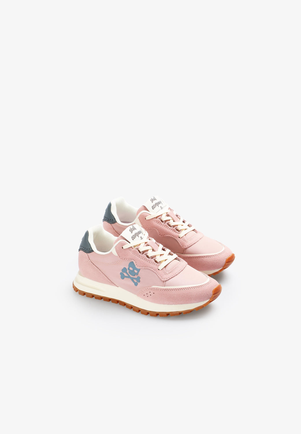 Sneakers confeccionada en nylon con detalles en serraje. Cierre con cordones, suela de goma pronunciada dentada y malla en la parte delantera. Calavera lateral y etiqueta personalizada.