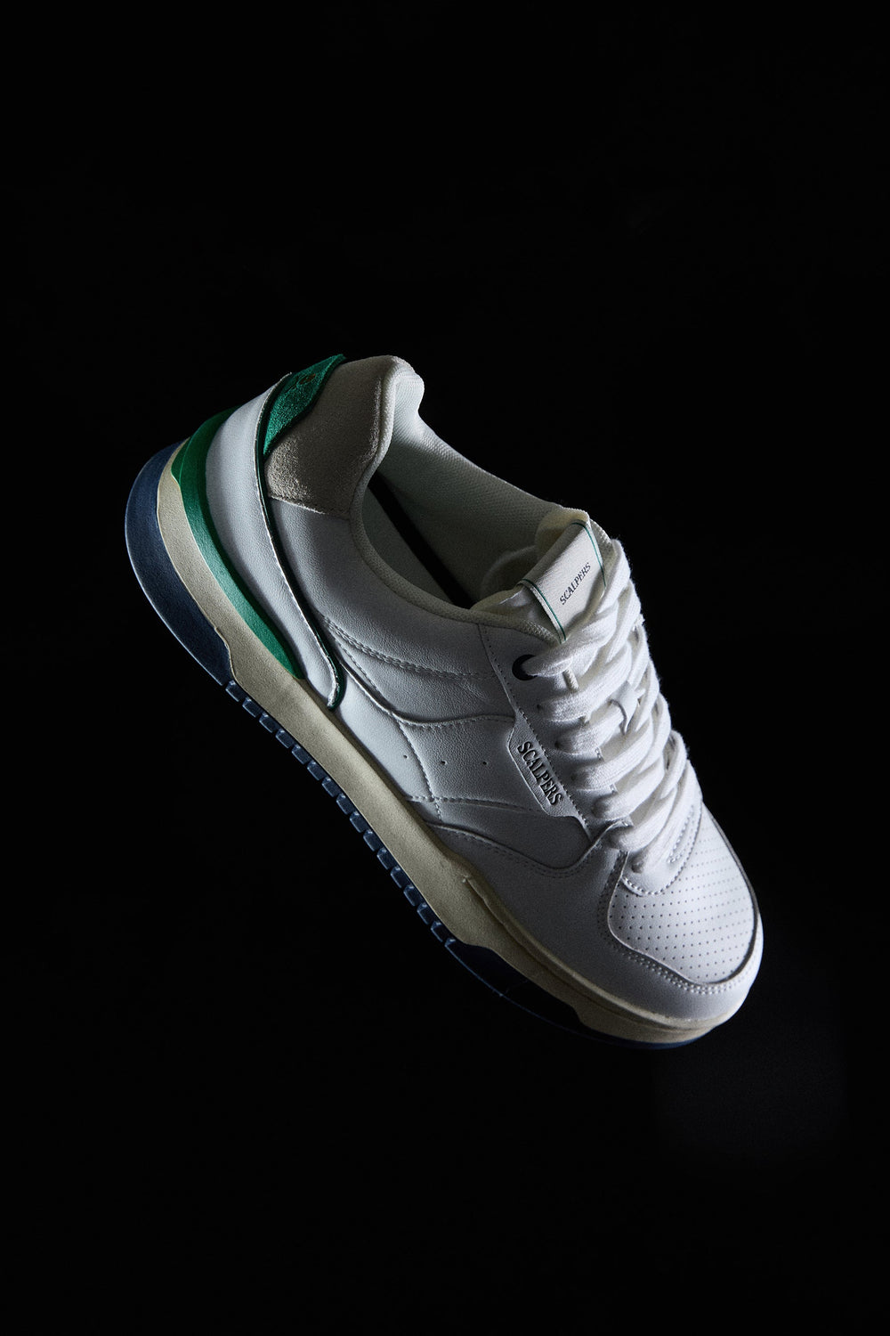 Sneakers confeccionadas en piel con logo lateral. Cierre con cordones, suela de TPR, detalle a contraste en talón y detalle de etiqueta en lengüeta personalizada.