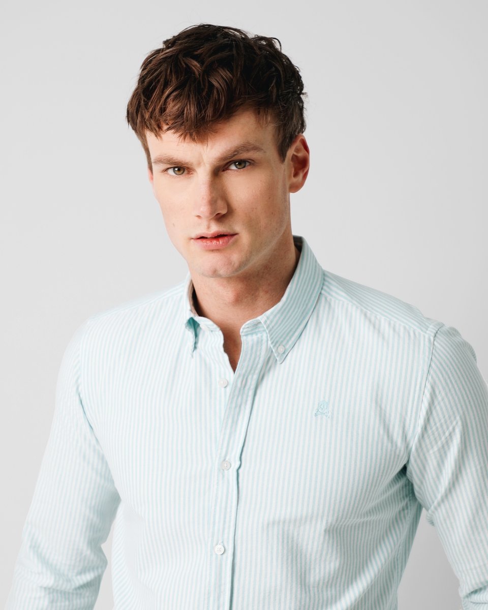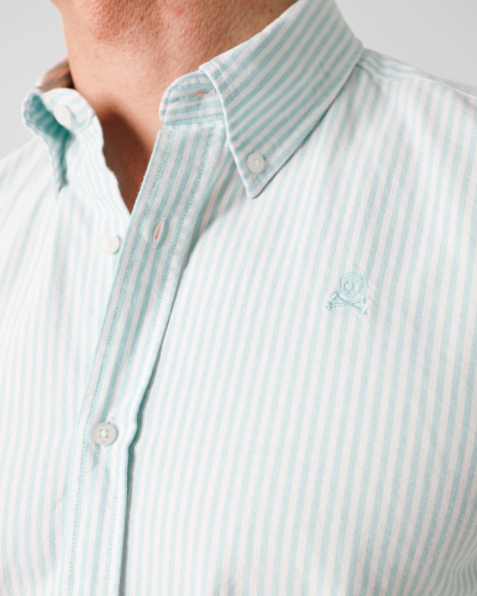 Camisa confeccionada en tejido 100% algodón. Corte Regular Fit, cuello button down y cierre con botones. Manga larga con puño simple y detalle de calavera bordada a tono en el pecho. Disponible en ocho colores.