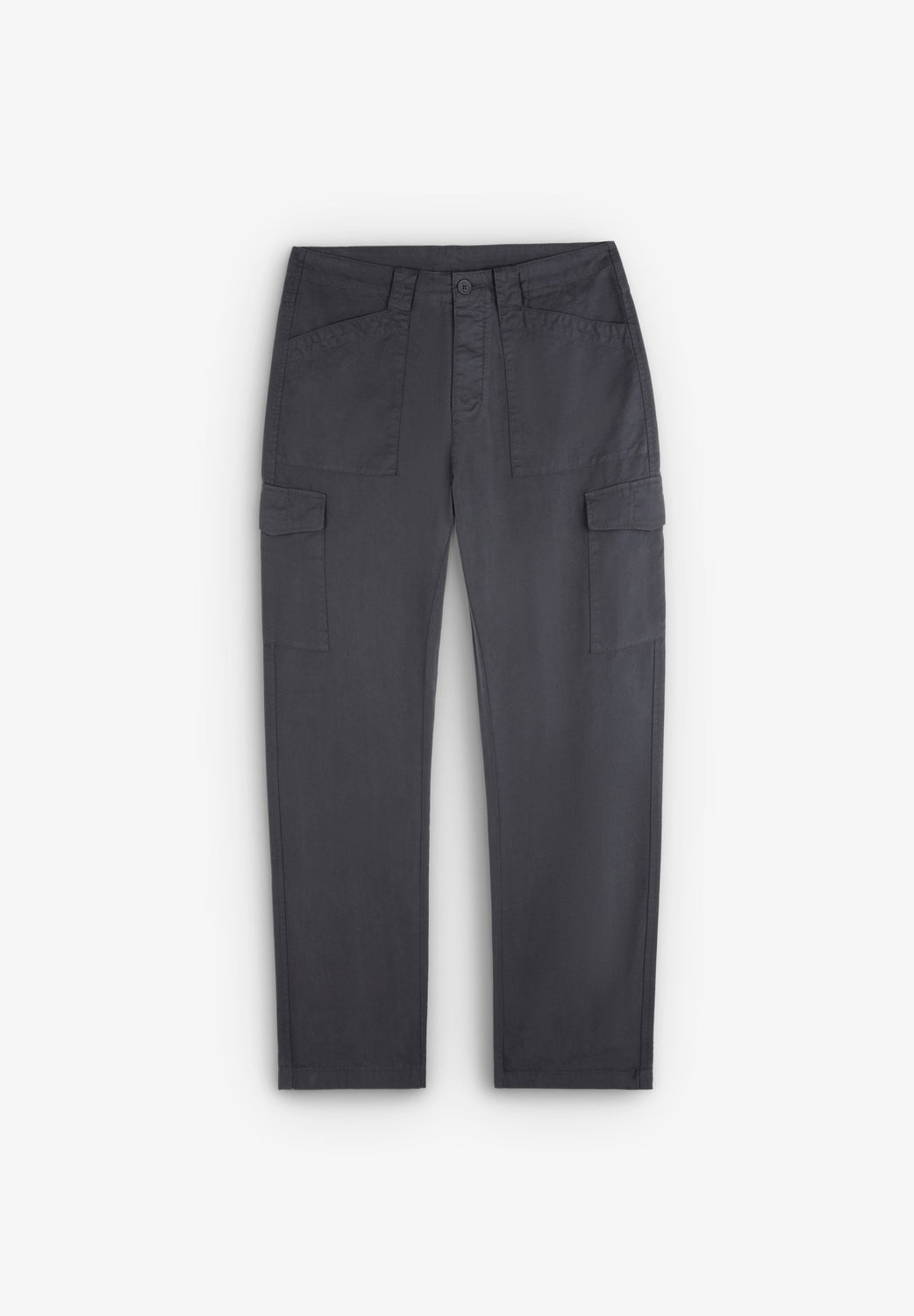 Pantalón tipo cargo confeccionado en 100% algodón BCI. Regular fit, cierre con botón y cremallera y bolsillos laterales. Bolsillos de parche en pernera y trabillas en cintura.