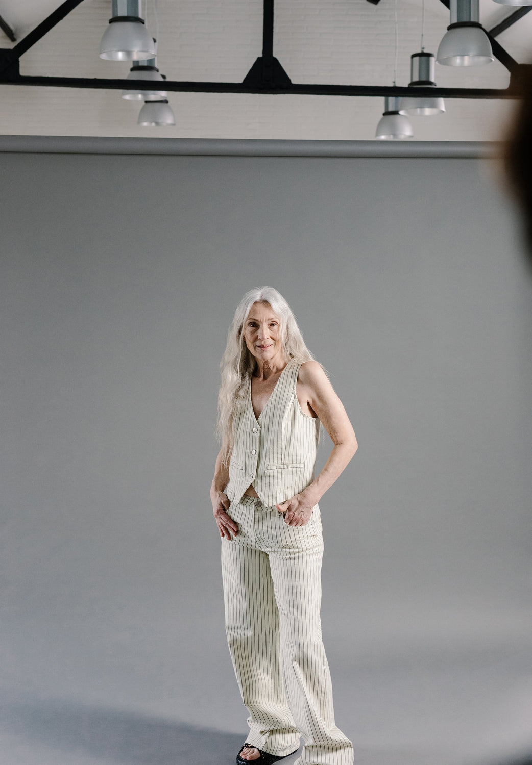 Pantalón vaquero de tiro alto confeccionado en 98% Algodón Orgánico BCI. Cierre por botón y cremallera. Dos bolsillos en frontal. Dos bolsillos en espalda. Estampado rayas. Regular Fit.