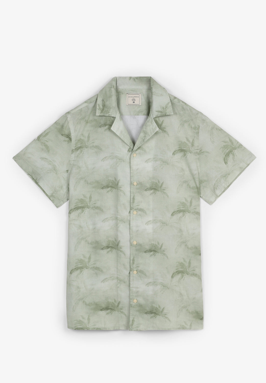 Camisa con estampado confeccionada en tejido 100% algodón. Corte Regular Fit, cuello cutaway y cierre con botones.