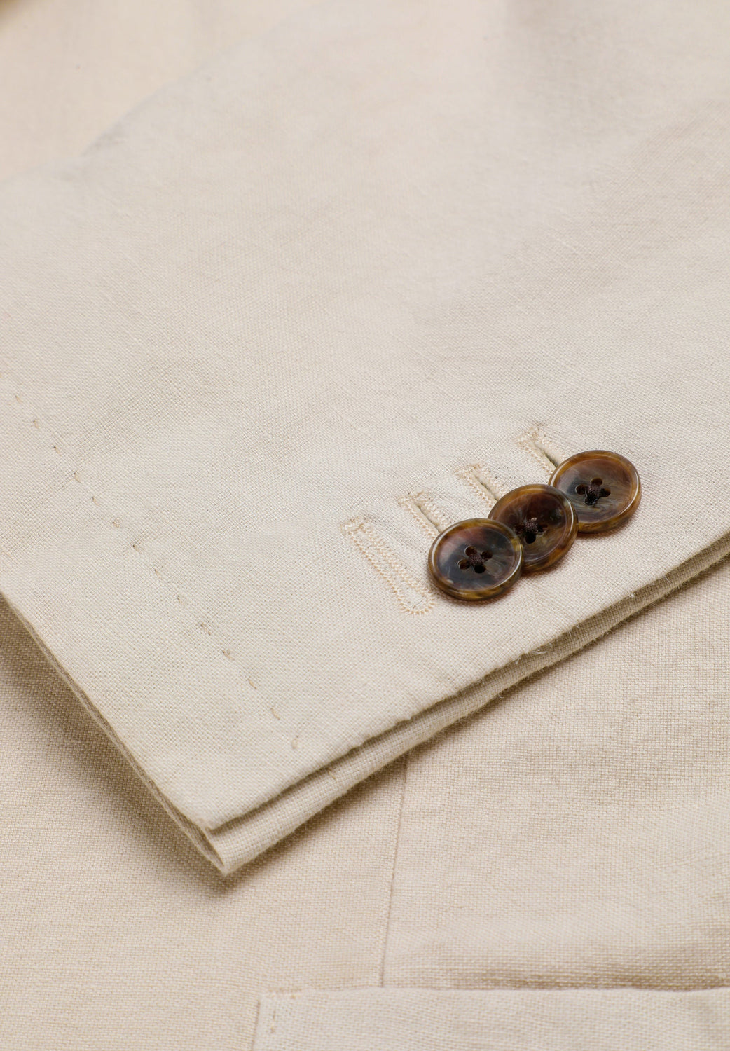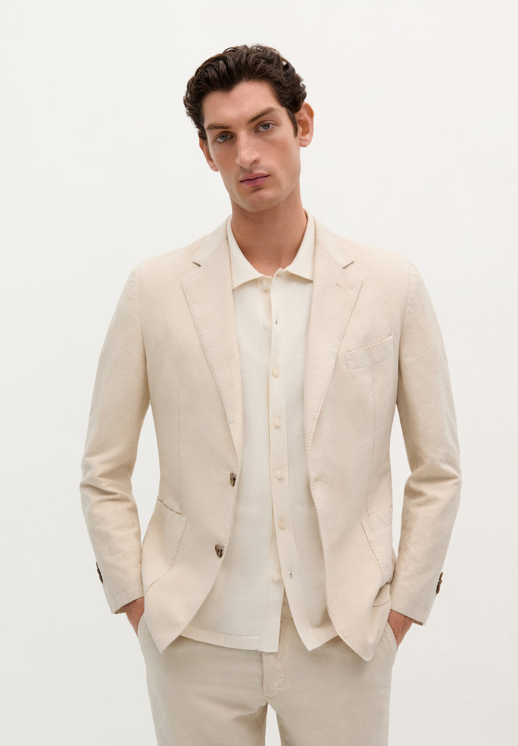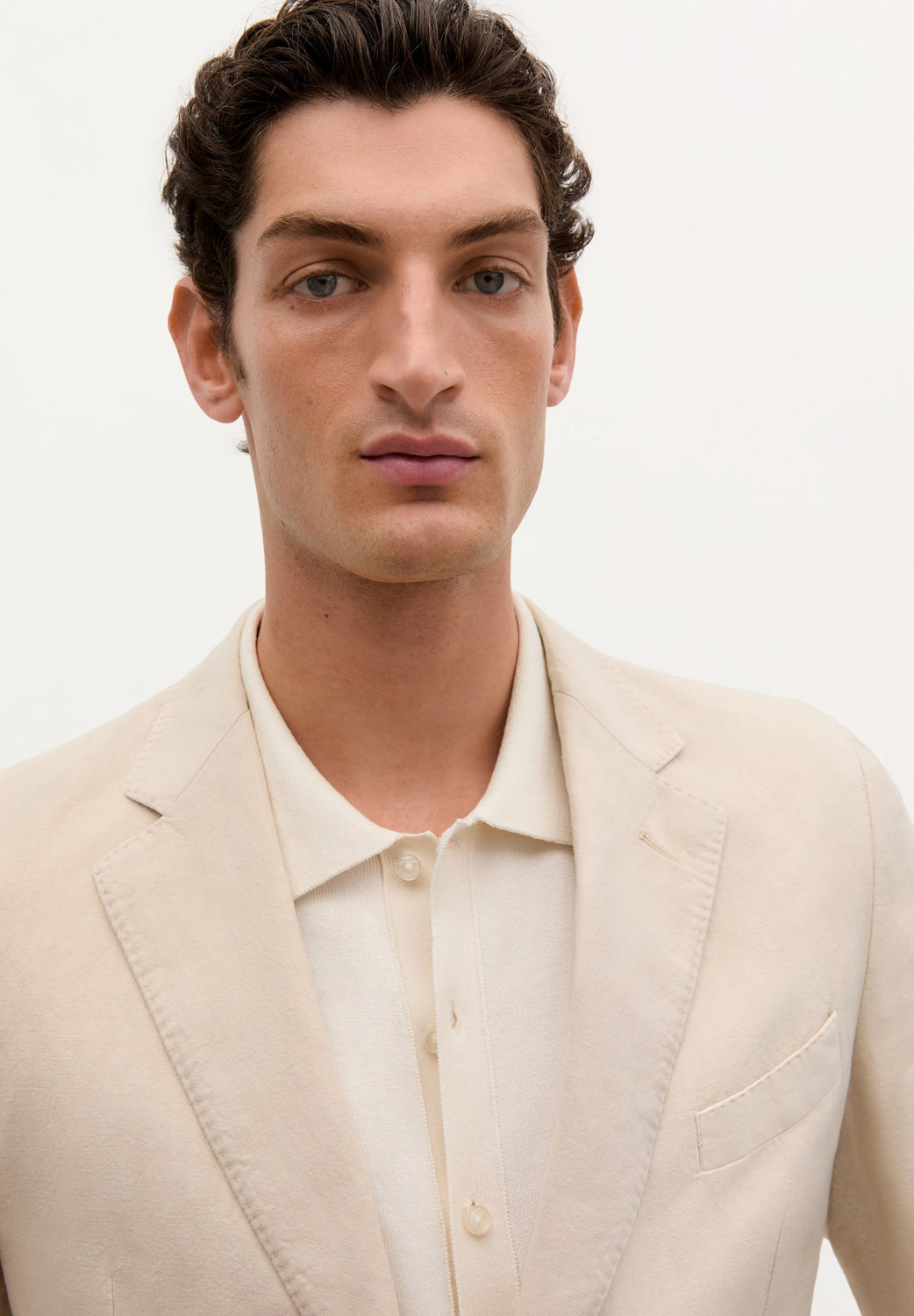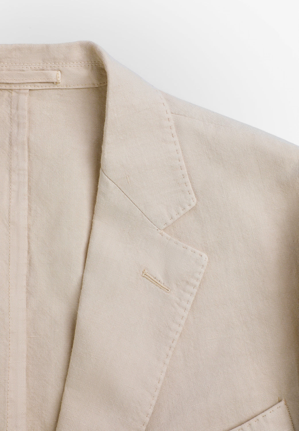 Americana ligera confeccionada en mezcla de Algodón y Lino. Corte regular fit. Cuello con solapas de muesca. Cierre con botones. Manga larga con botones. Bolsillo de parche.
