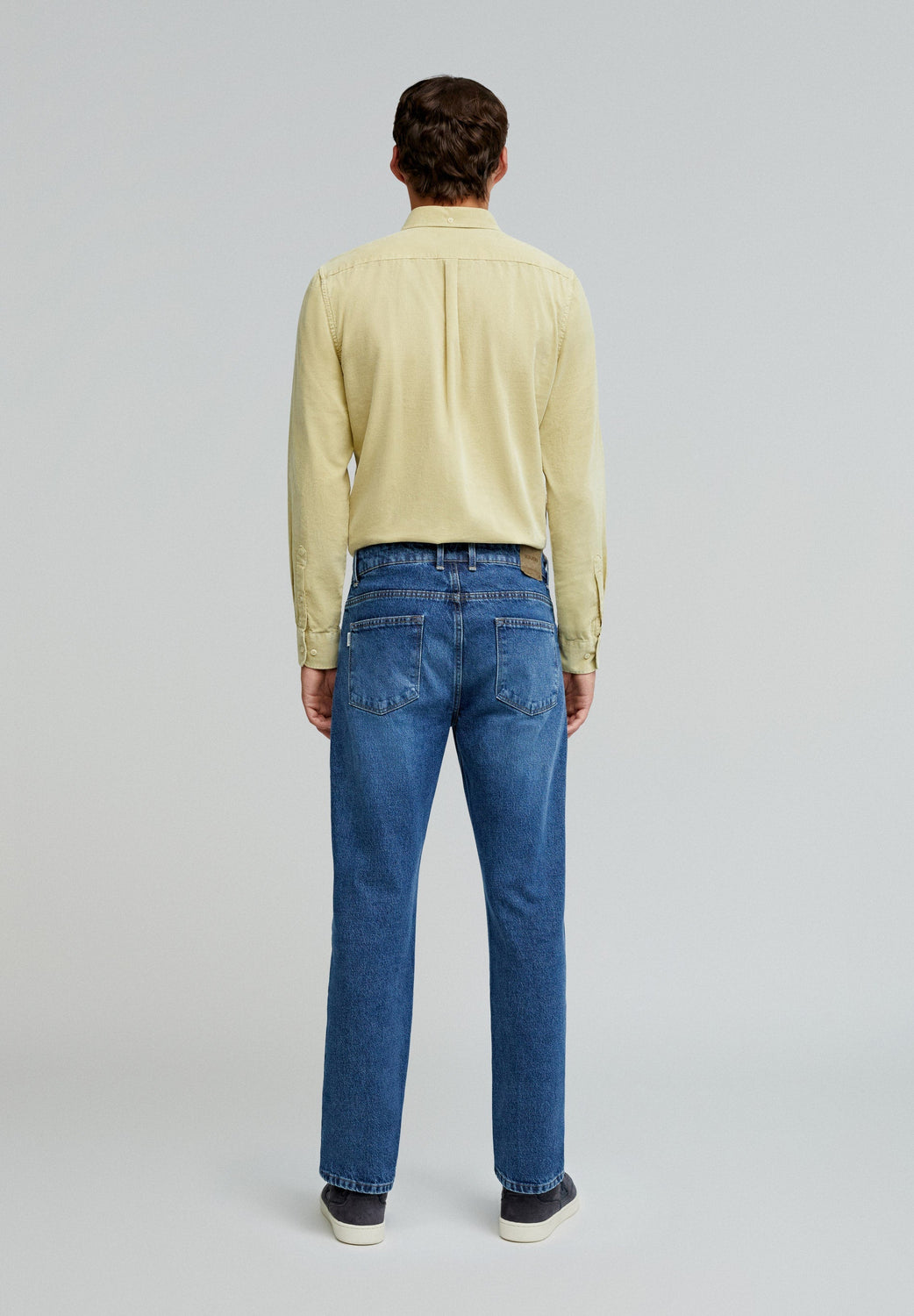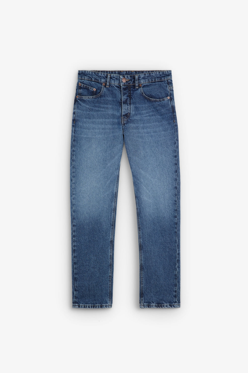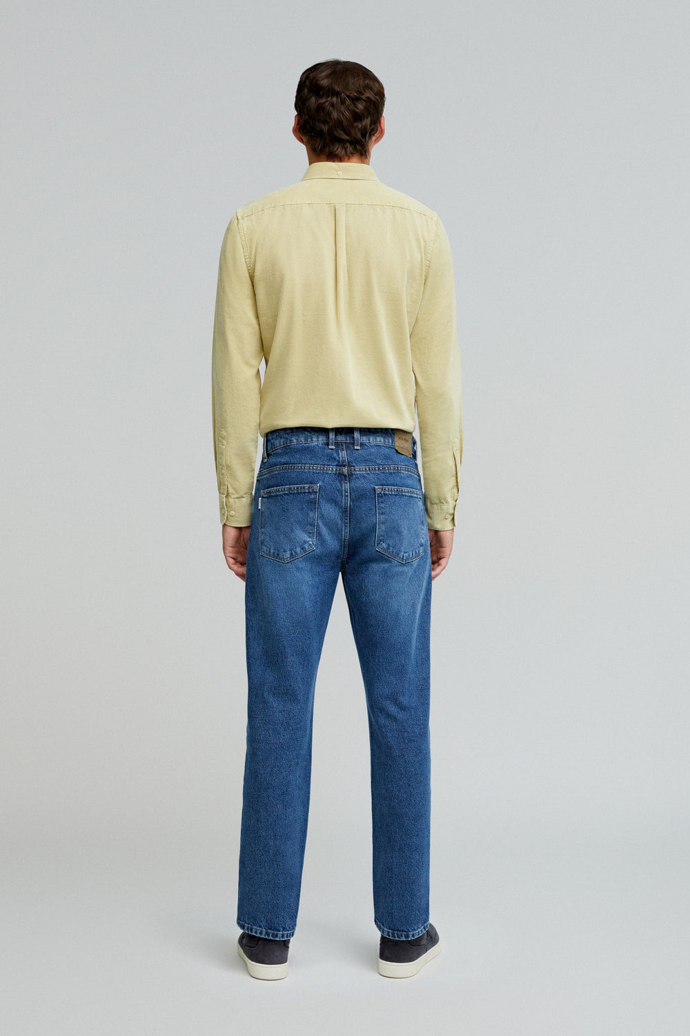 Jeans confeccionados en algodón BCI. Regular fit, cierre con botones y trabillas en cintura. Bolsillos delanteros y traseros.